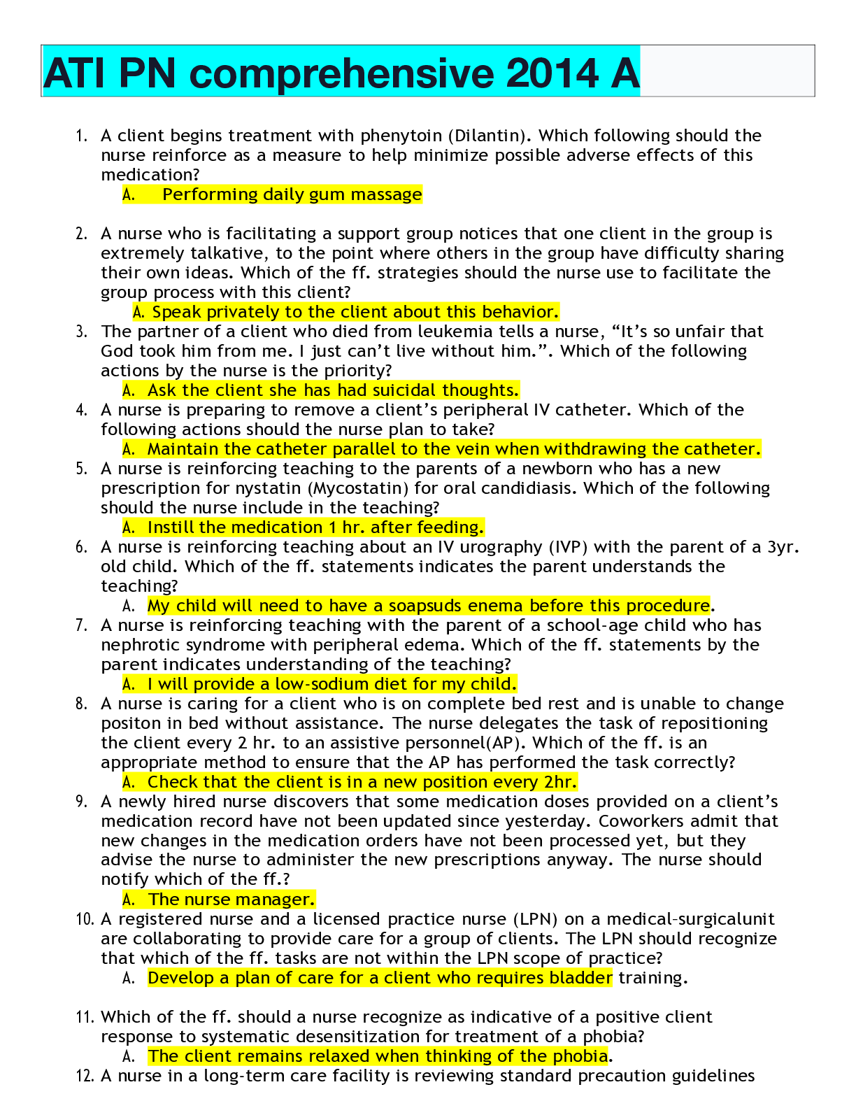 *NURSING > ATI > ATI PN comprehensive 2014 AATI PN comprehensive 2014 A (All)