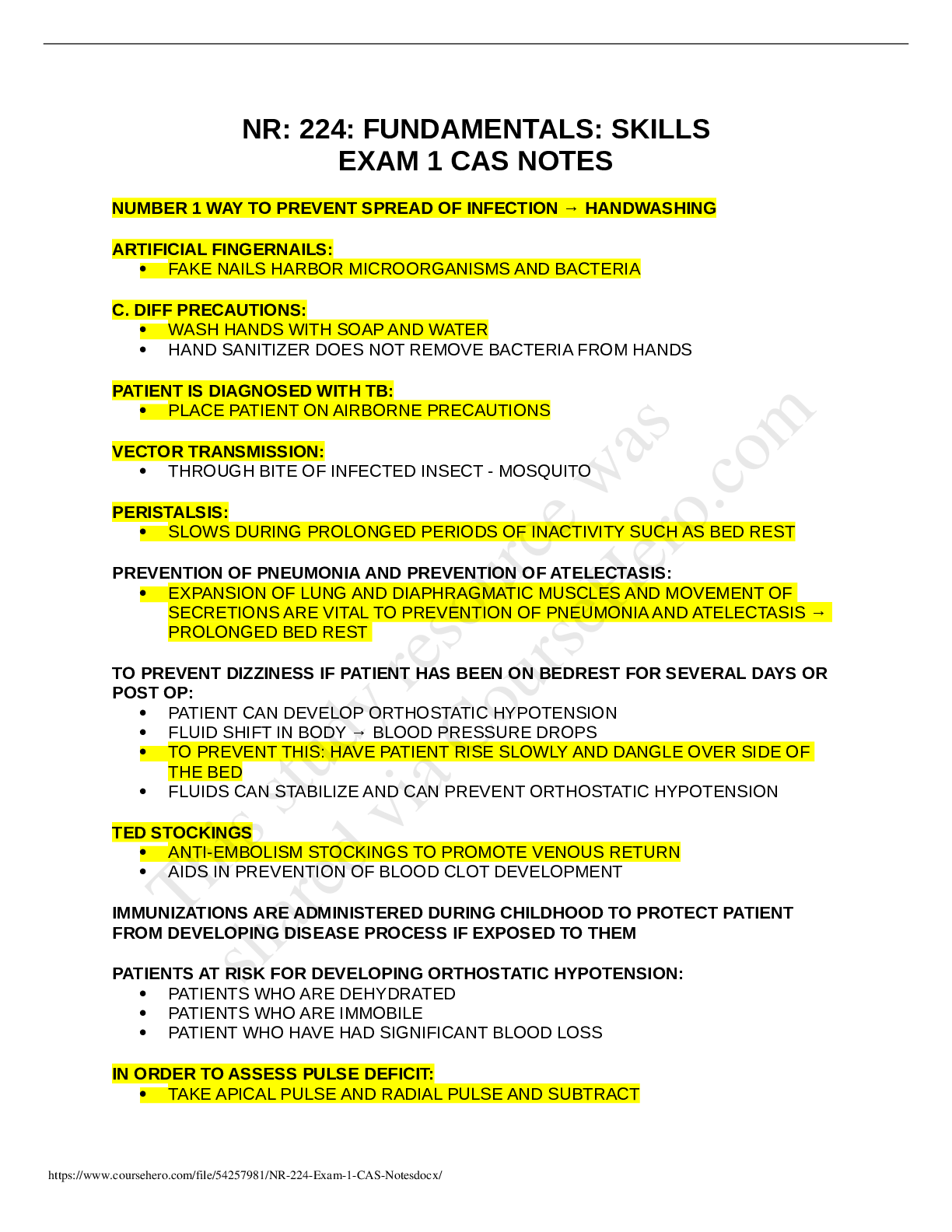 *NURSING > Class Notes > NR: 224: FUNDAMENTALS: SKILLSEXAM 1 CAS NOTES (All)