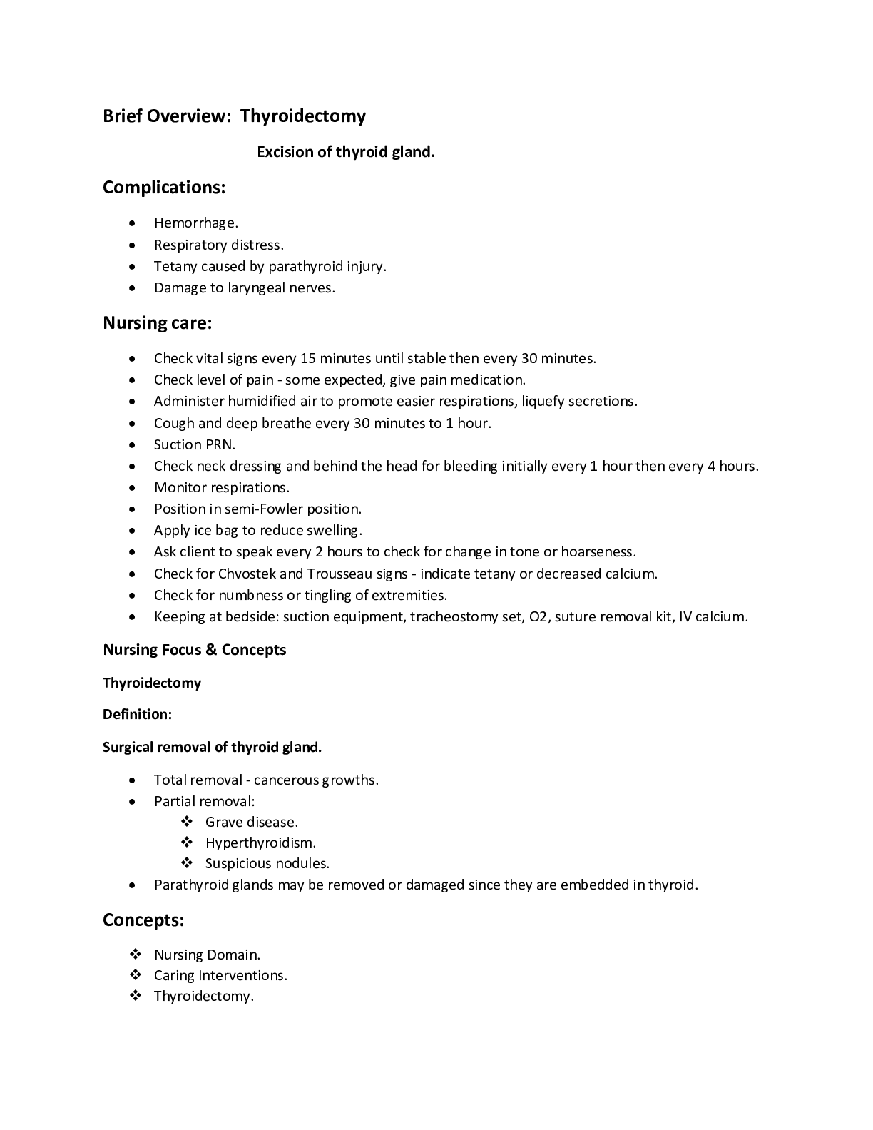 *NURSING > Class Notes > Brief Overview: Thyroidectomy (All)