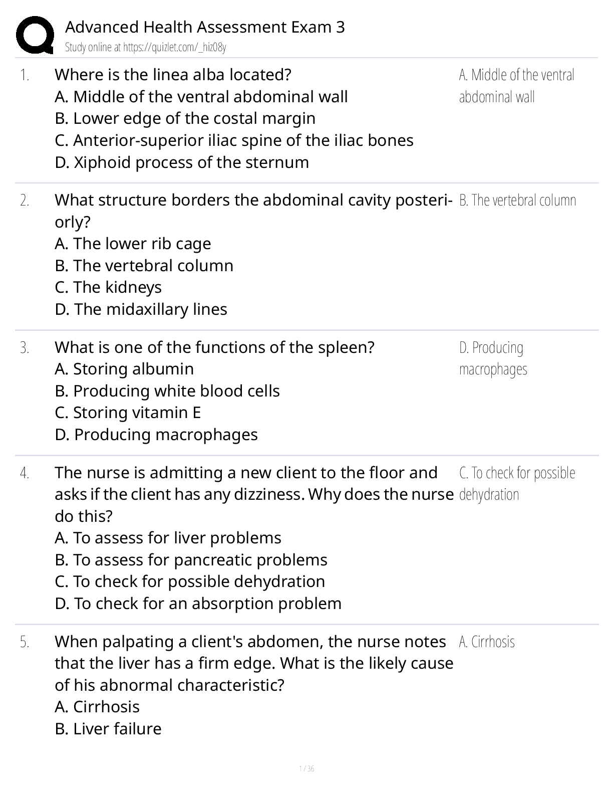 *NURSING > Class Notes > Advanced Health Assessment Exam 3 — Class Notes, Study Guide & Test Bank (Graduate Nursing & NP Prep) (All)