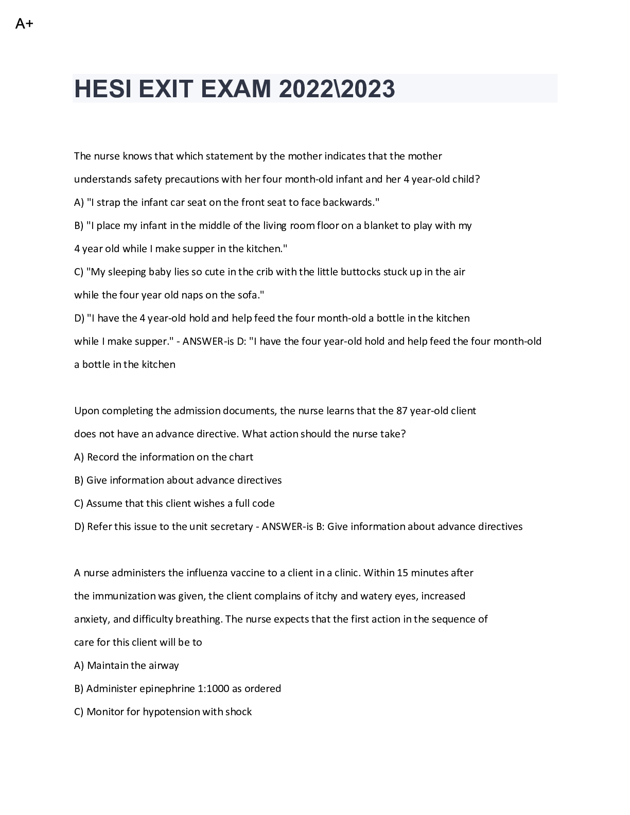 *NURSING > AQA Question Papers > HESI EXIT EXAM 2022\2023 (All)