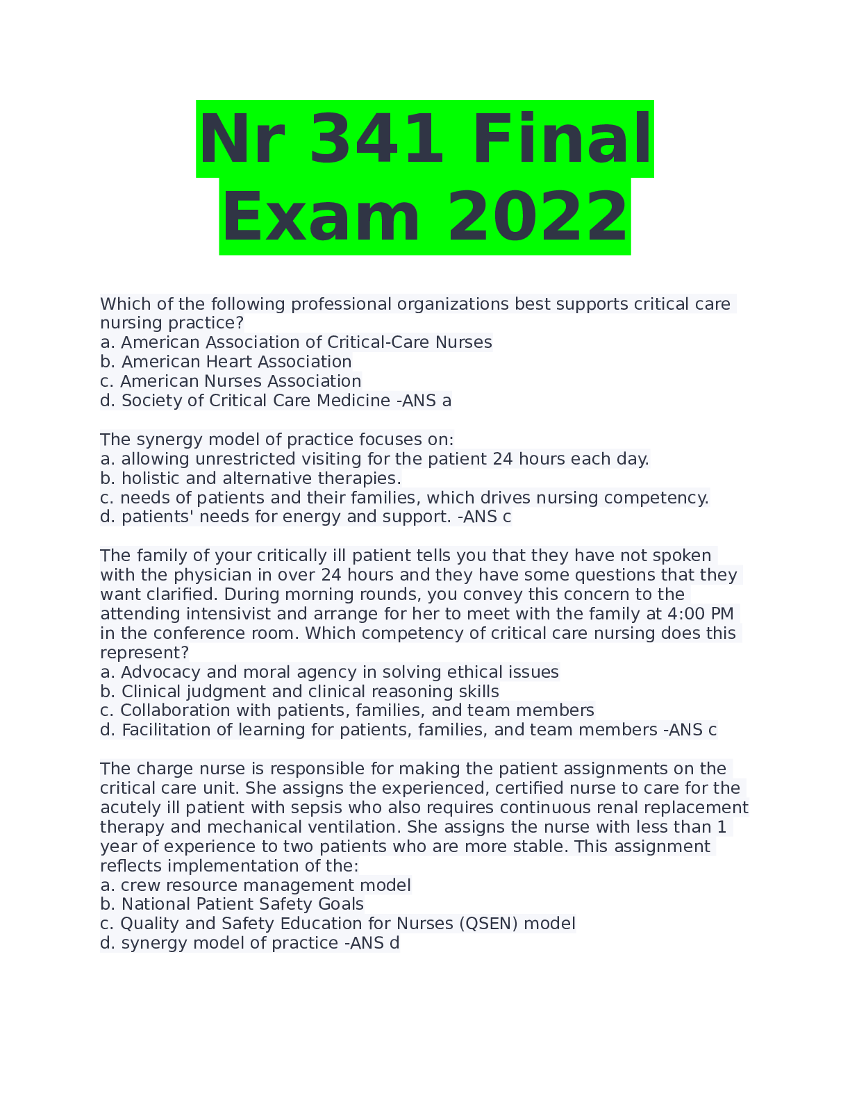 *NURSING > AQA Question Papers > Nr 341 Final Exam 2022 (All)