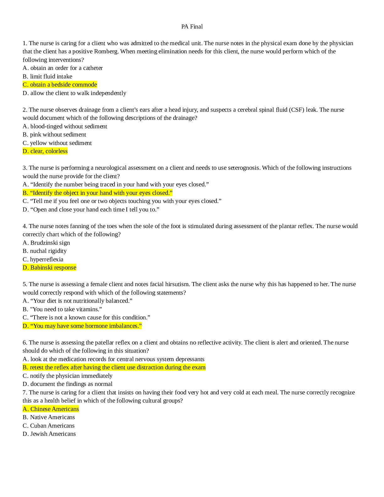 *NURSING > AQA Question Papers > West Coast University - NURS 190 PA FINAL Exam - Latest - Already graded A (All)