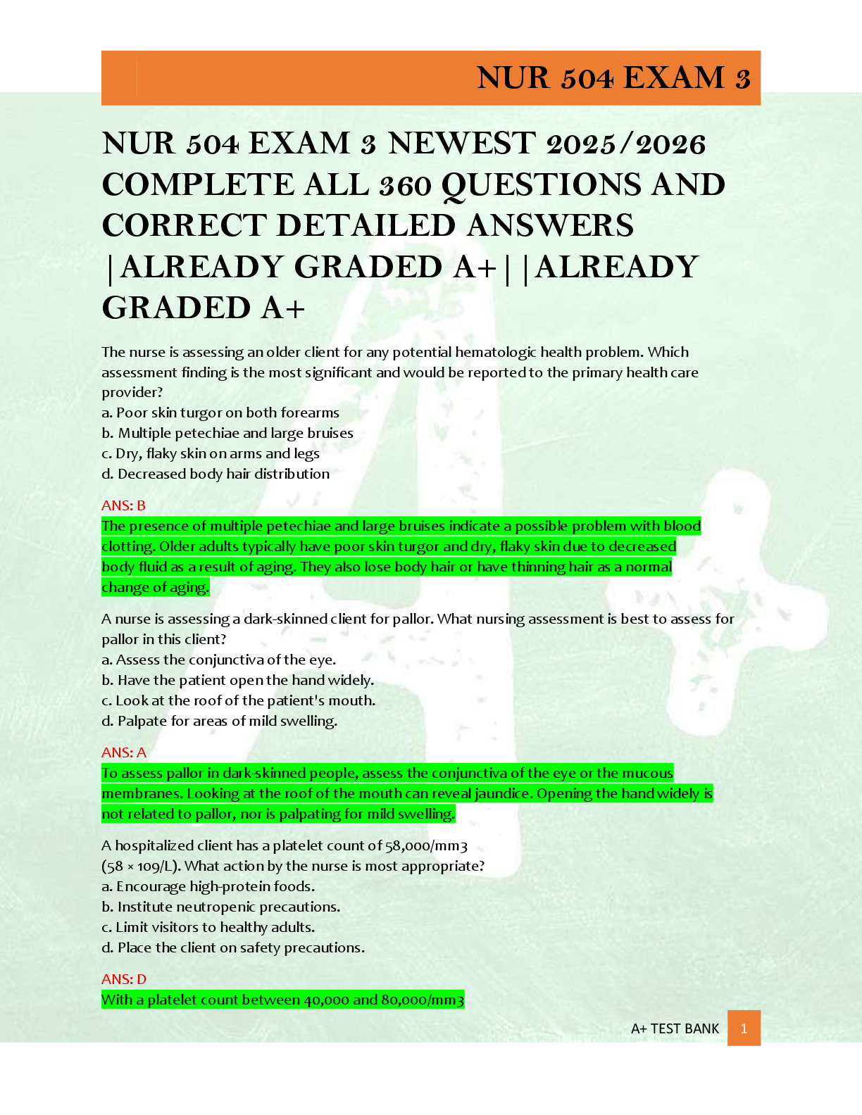*NURSING > Edexcel Question Paper > ATI CCRN CERTIFICATION MODULE 8 HEMATOLOGY AND IMMUNOLOGY 4 PRACTICE TESTS 2024 (All)