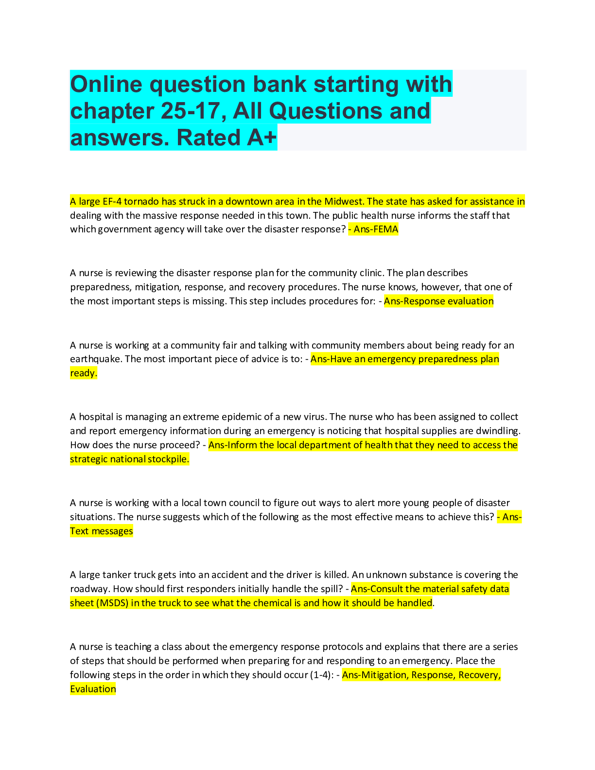 *NURSING > QUESTION PAPER & MARK SCHEME > Online question bank starting with chapter 25-17, All Questions and answers. Rated A+ (All)