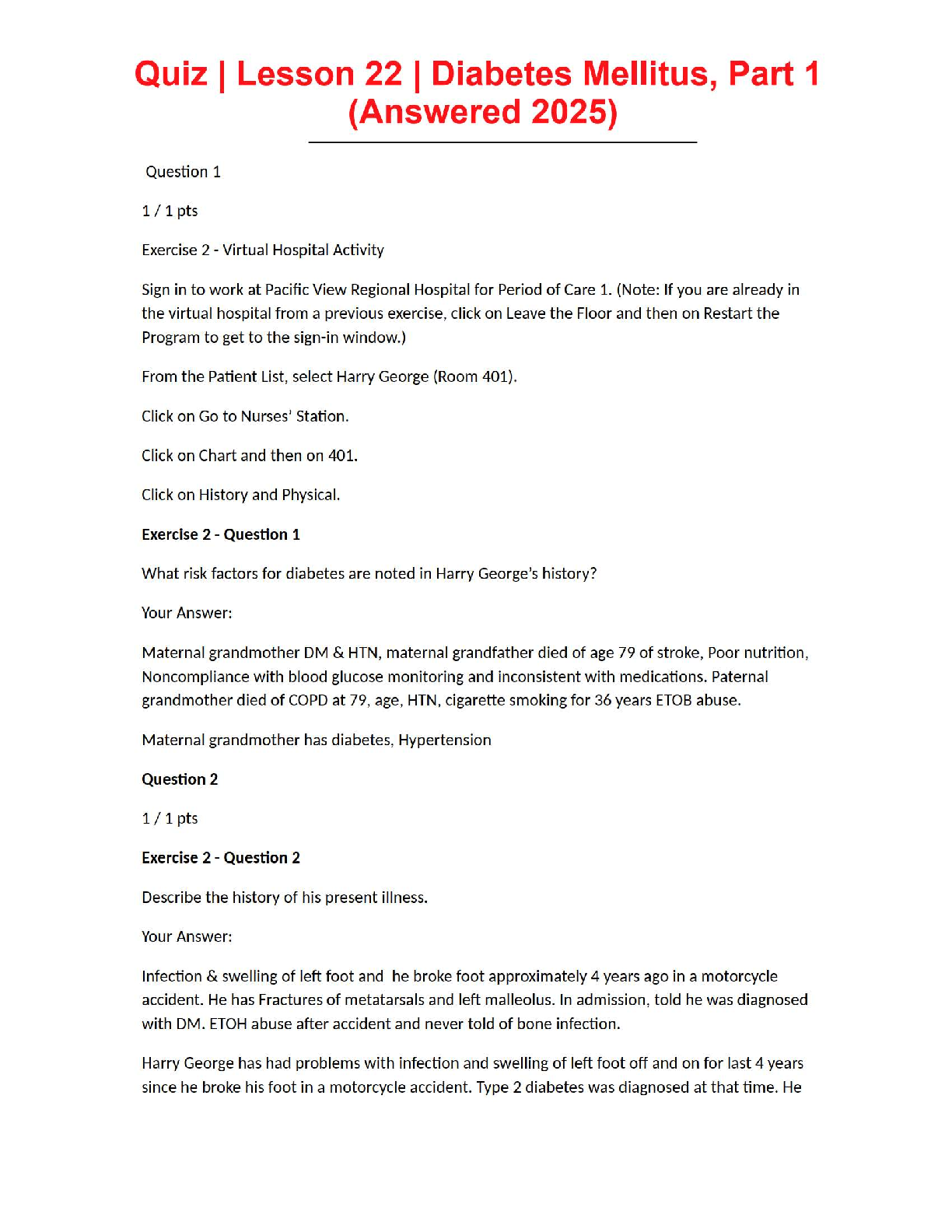 *NURSING > Quiz > VSIM-George Palo- Prequiz | Questions with 100% Correct Answers | Updated & Verified (All)