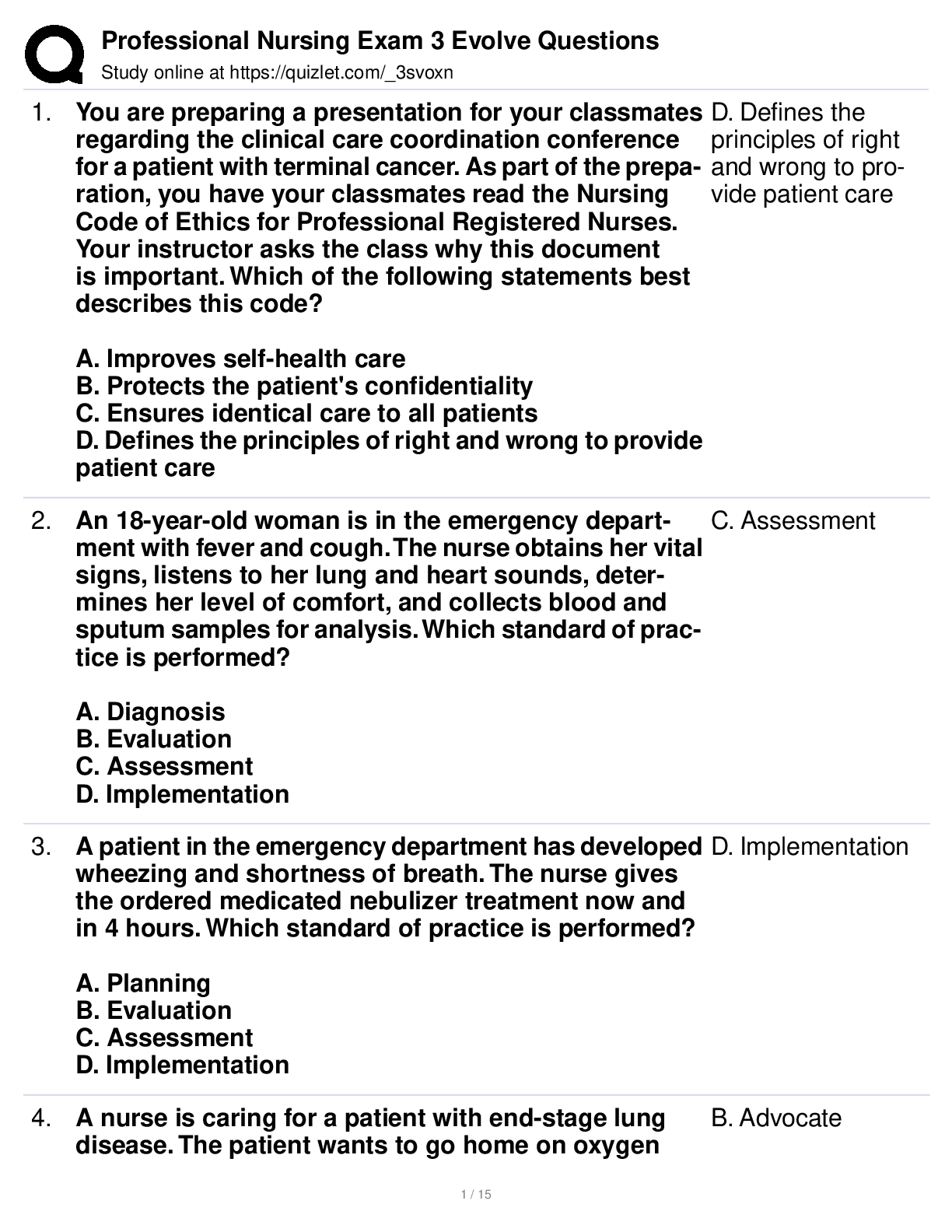 *NURSING > As Level Question Papers > Professional Nursing Exam 3 Evolve Questions (All)