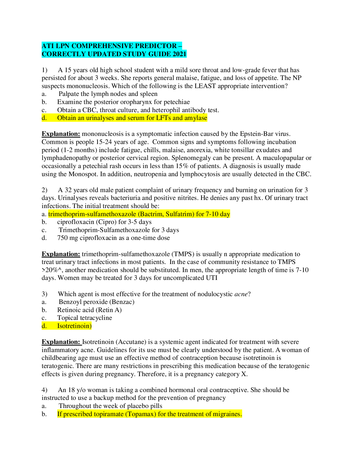 *NURSING > ATI > ATI LPN COMPREHENSIVE PREDICTOR –CORRECTLY UPDATED STUDY GUIDE 2021. Document Contains 336 Questions, Answers, & Explanations. (All)