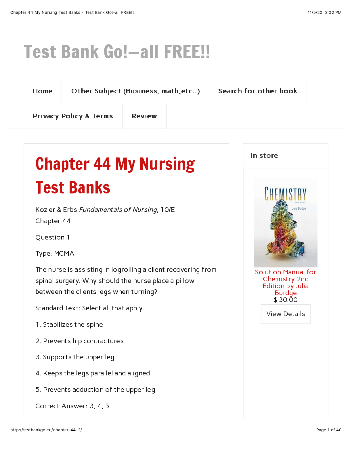*NURSING > QUESTIONS & ANSWERS > Chapter 44 My Nursing Test Banks - Test Bank Go!-all FREE!!.pdf. LATEST. SCORE HIGH (All)