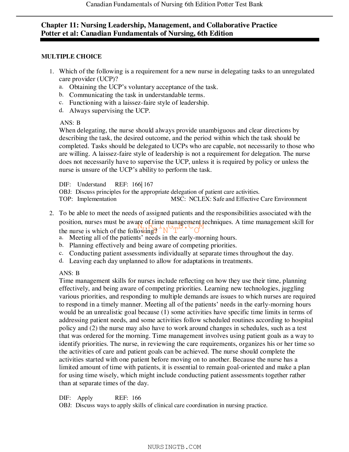 *NURSING > EXAM > Canadian Fundamentals of Nursing, 6th Edition Chapter 11: Nursing Leadership, Management, and Collaborative Practice Potter et al Graded A (All)