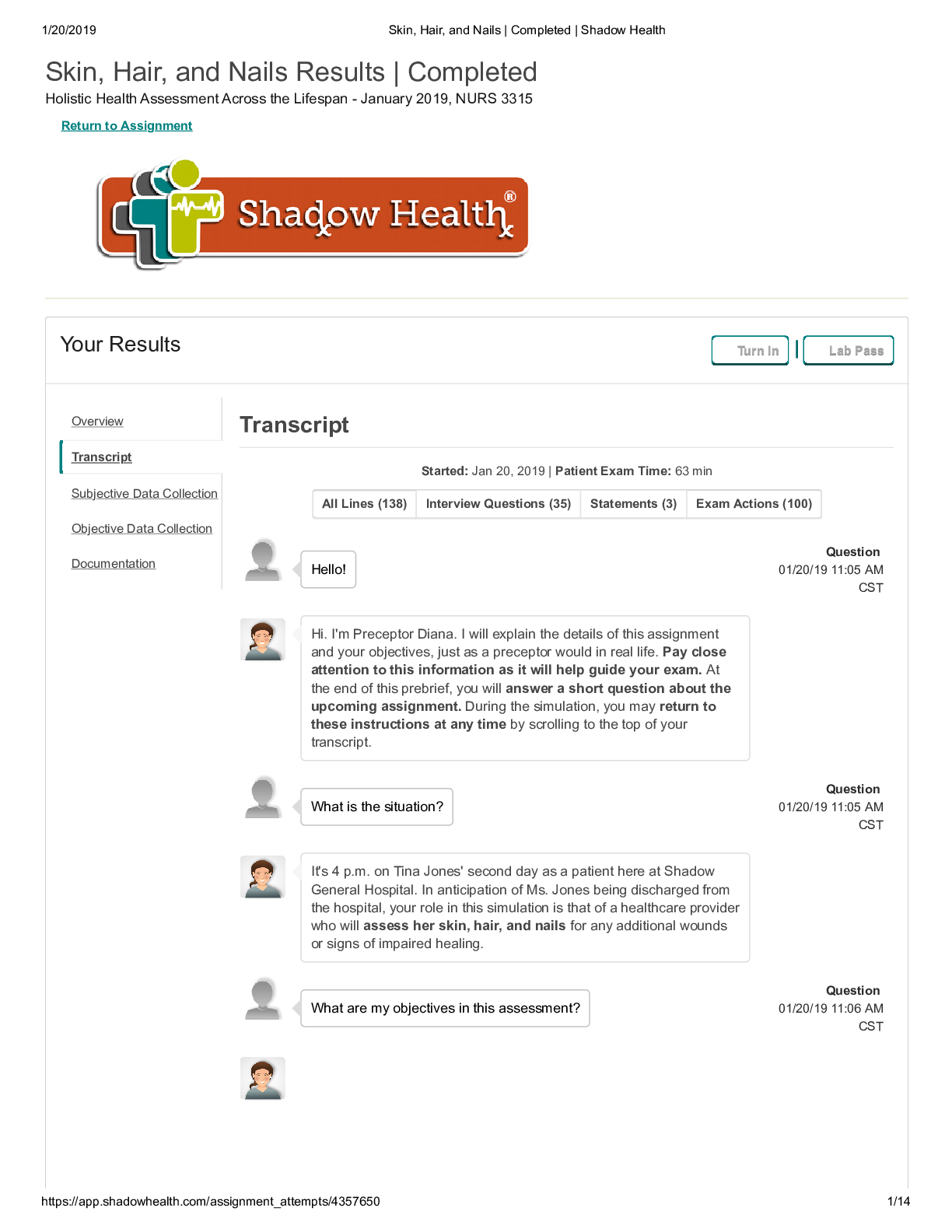 *NURSING > SHADOW HEALTH > University of Texas, Arlington NURS 3315 Completed shadow for skin,hair and nails NEW 2022 (All)