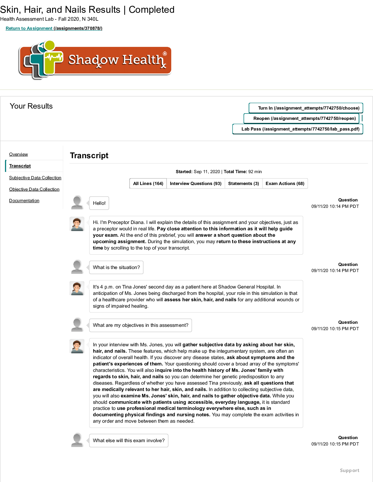 *NURSING > SHADOW HEALTH > Nova Southeastern University BIOL 4130 (All)
