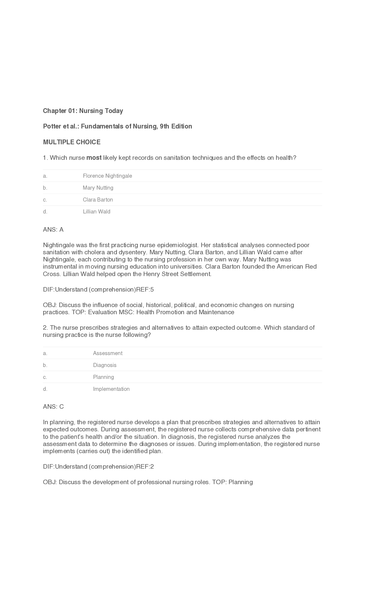 *NURSING > EXAM > Test Bank For Fundamentals Of Nursing 10th Edition Porter Perry;Score An A (All)