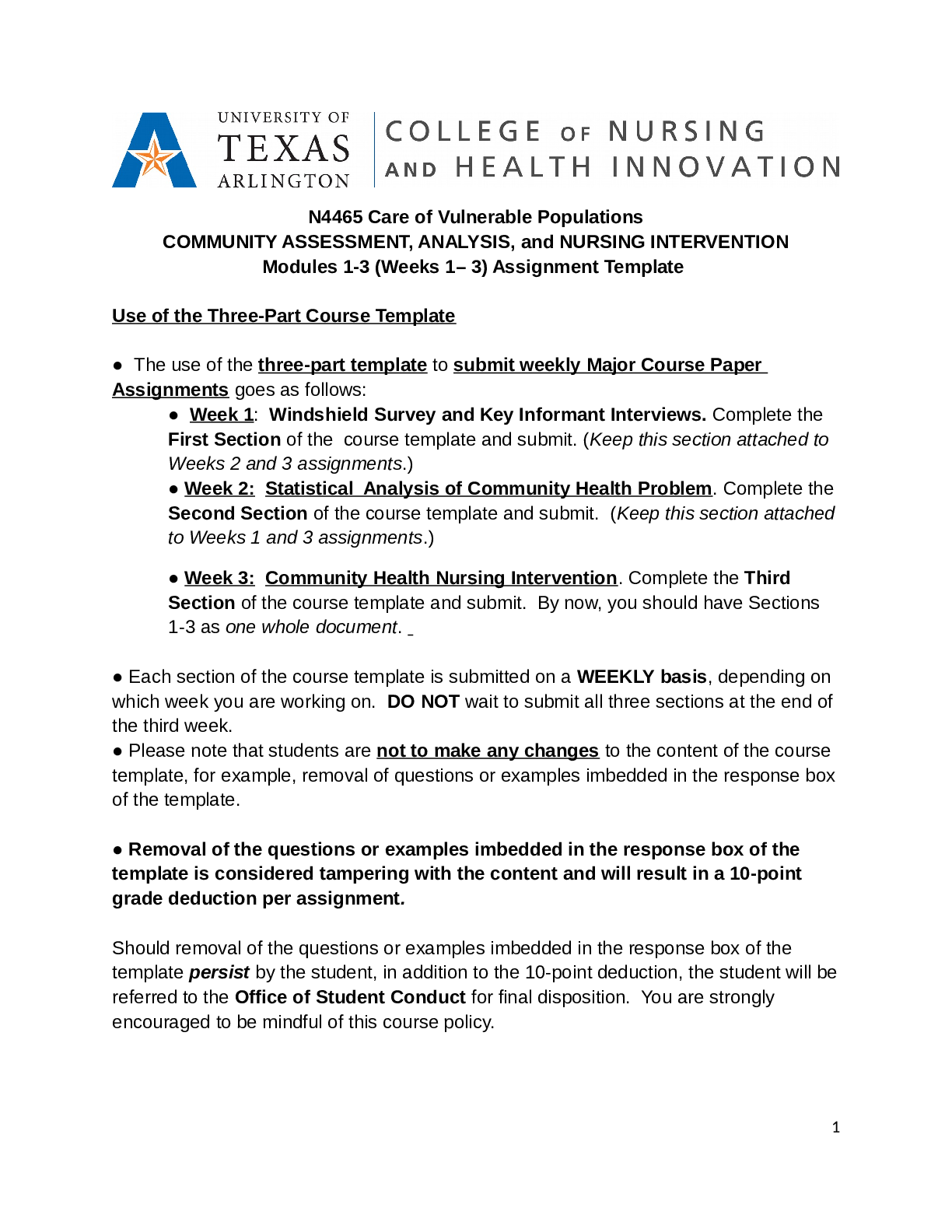 *NURSING > STUDY GUIDE > N4465 Care of Vulnerable Populations COMMUNITY ASSESSMENT, ANALYSIS, and NURSING INTERVENTION Modules 1-3 (Weeks 1– 3) Assignment Template (All)