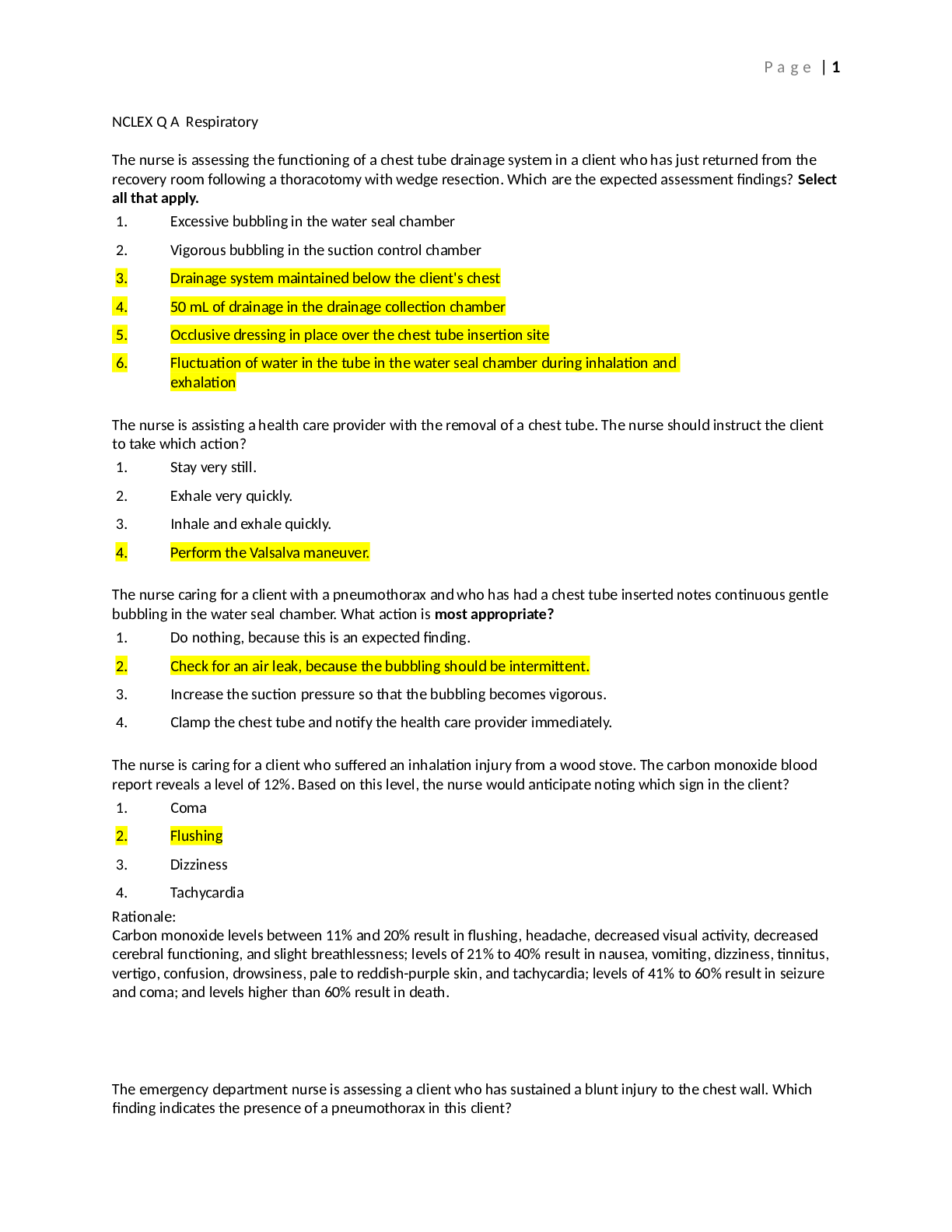 *NURSING > EXAM > RNSG RNSG 1250 Respiratory Nclex Q and A TOP GRADE A+ (All)