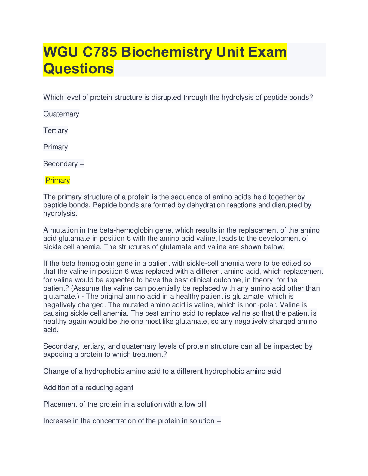 *NURSING > EXAM > WGU C785 Biochemistry Unit Exam Questions And Answers( Top score) (All)