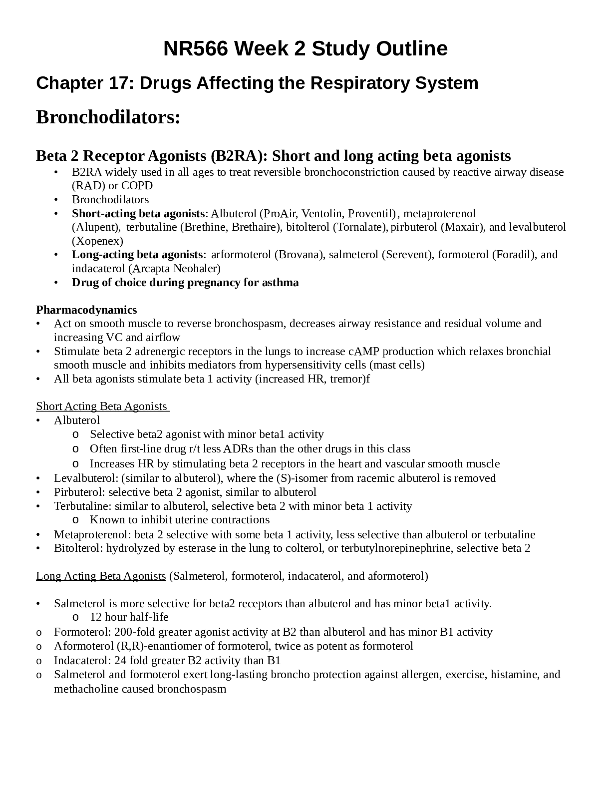 *NURSING > STUDY GUIDE > NR 566 Week 2 Study Guide {2022} | Chapter 17: Drugs Affecting the Respiratory System (All)