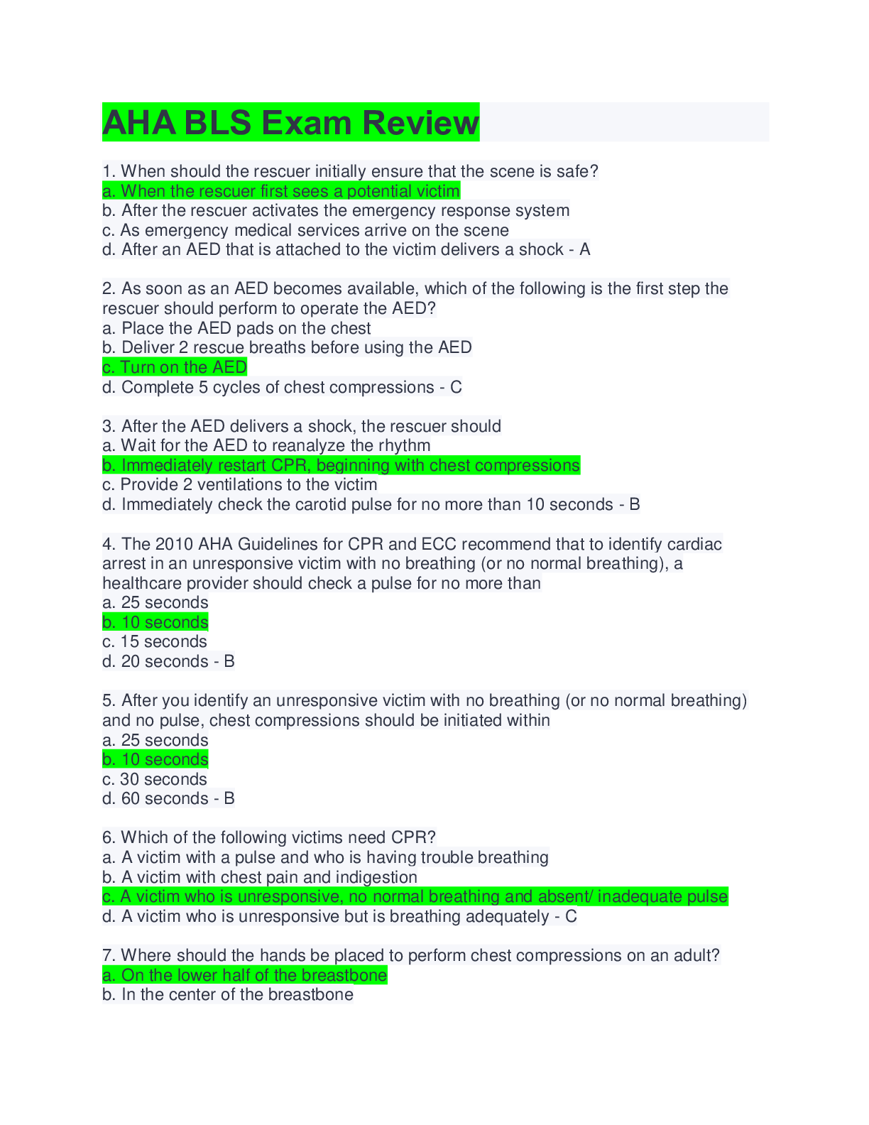 *NURSING > EXAM > AHA BLS Exam Review Questions And Answers With Complete Solutions (All)