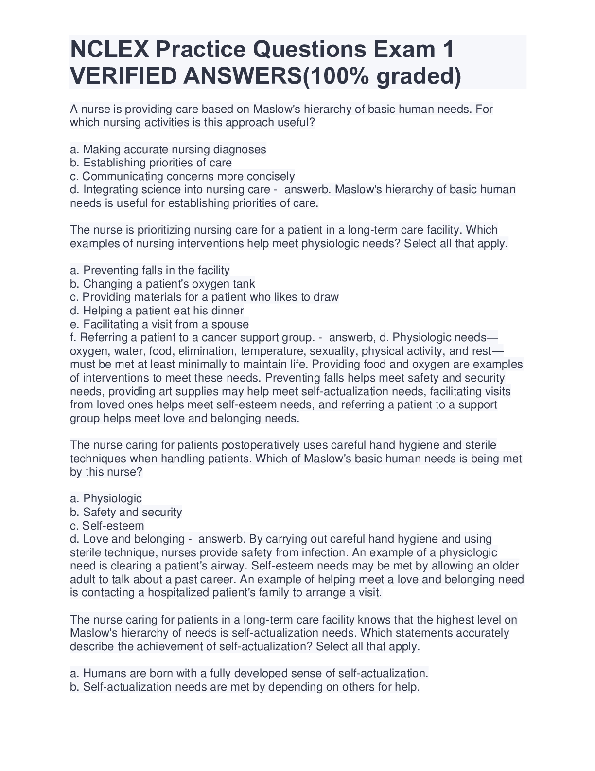 *NURSING > EXAM > NCLEX Practice Questions Exam 1 WITH VERIFIED ANSWERS 100% correct. (All)