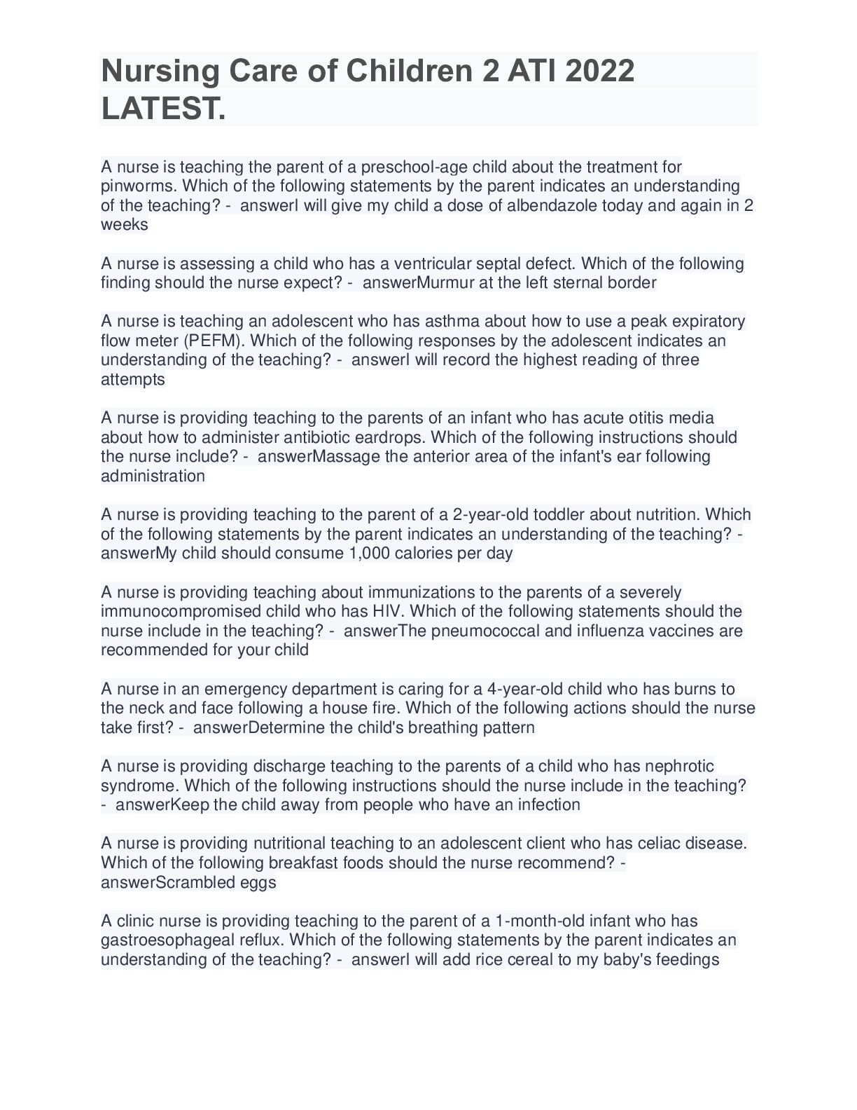 *NURSING > EXAM > Nursing Care of Children 2 ATI GRADED A. (All)