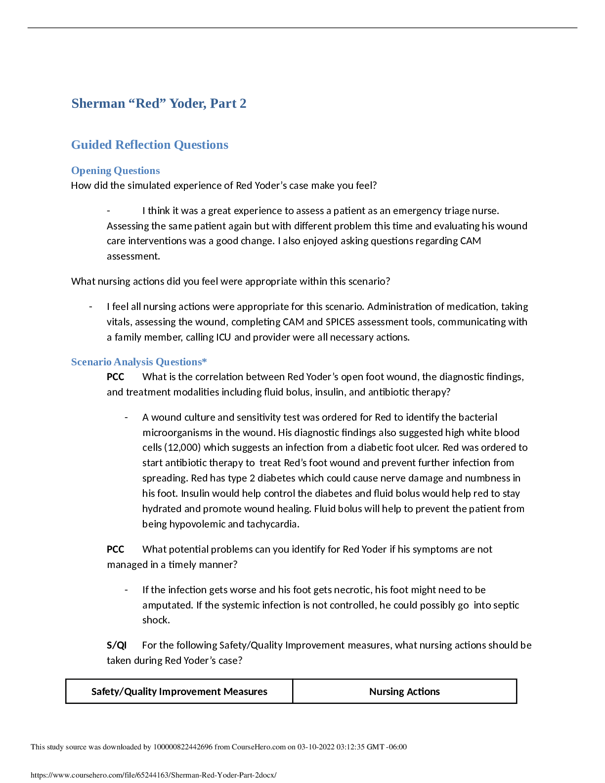 *NURSING > EXAM > VSIM RED YODER part 1 Guided Reflection 6.16( Best Solution) Top Score A+ (All)