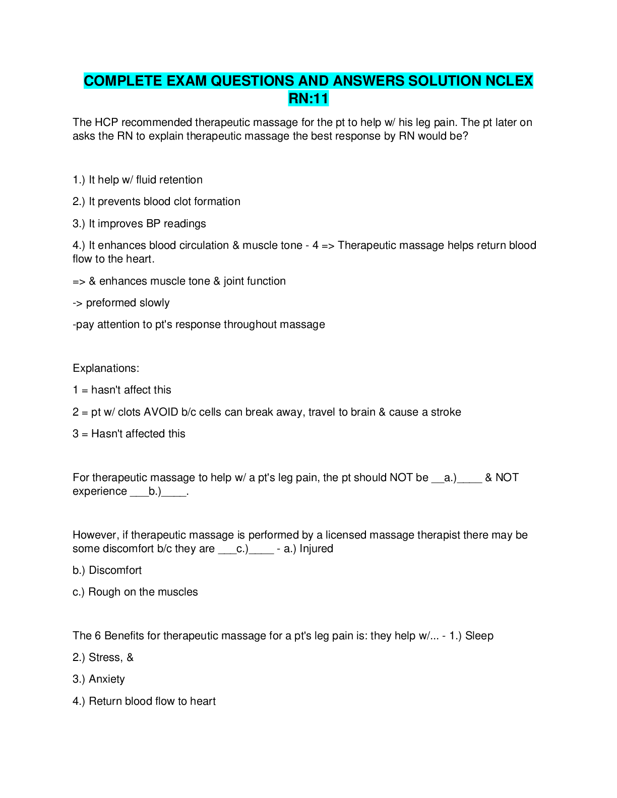 *NURSING > EXAM > COMPLETE EXAM QUESTIONS AND ANSWERS SOLUTION NCLEX RN:11 (All)