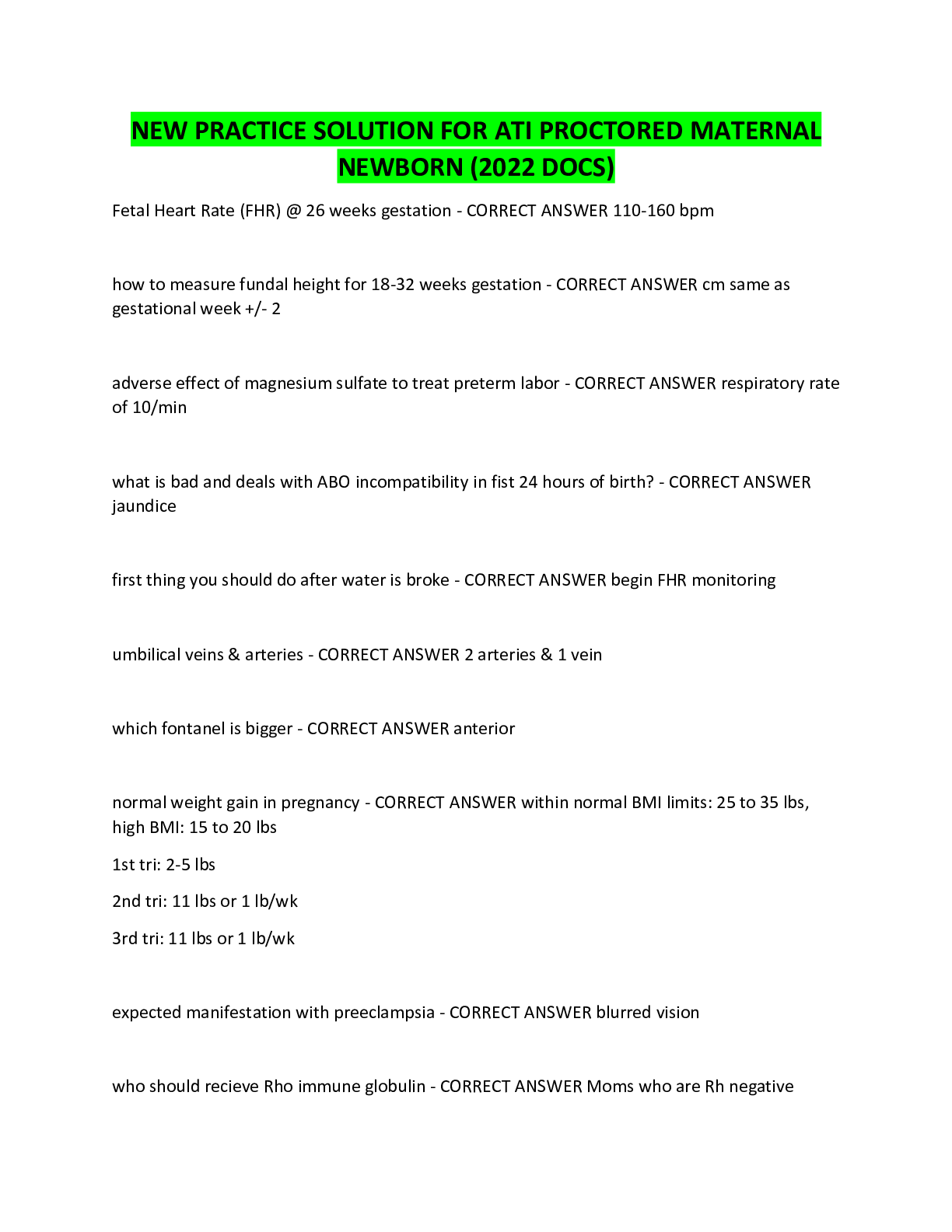 *NURSING > EXAM > NEW PRACTICE SOLUTION FOR ATI PROCTORED MATERNAL NEWBORN (2022 DOCS (All)
