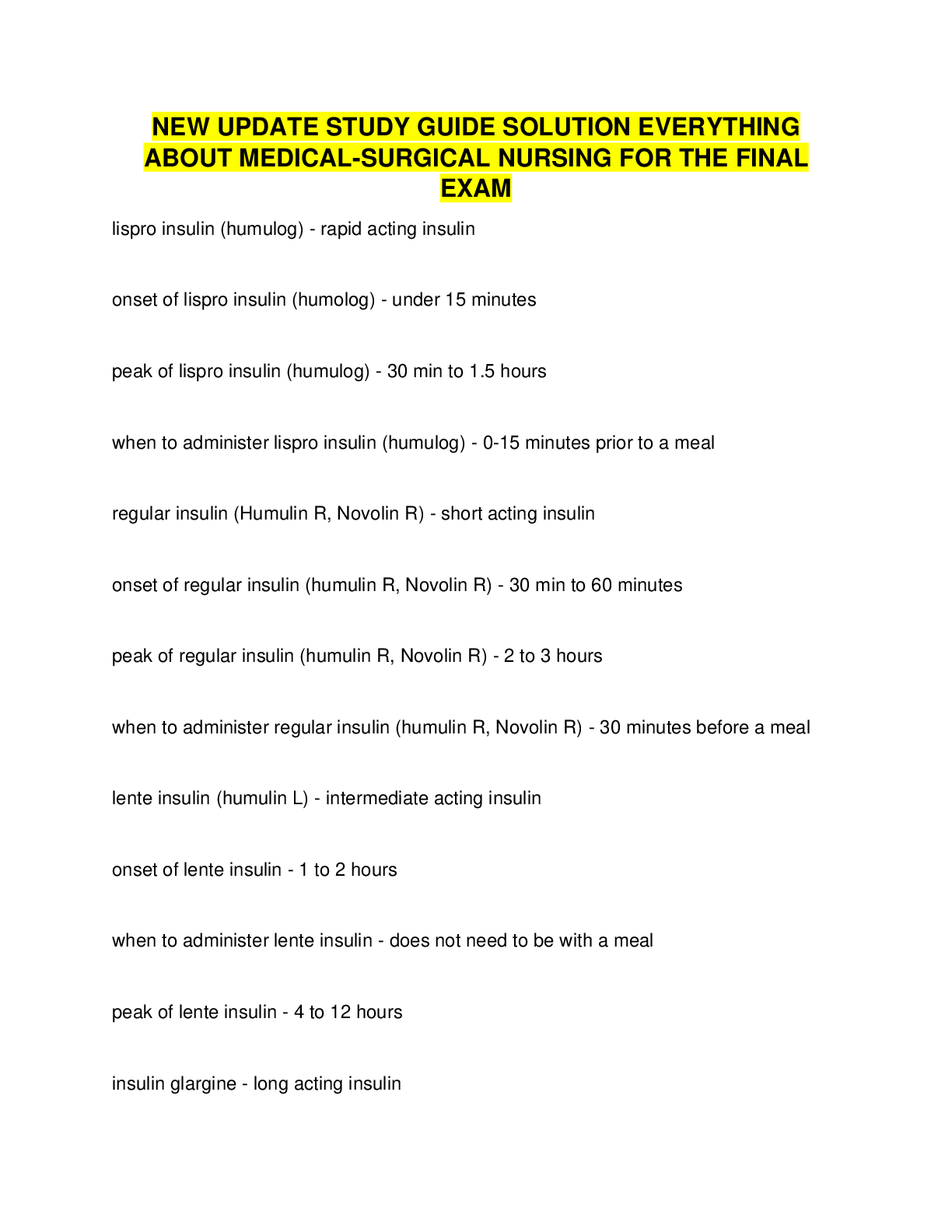 *NURSING > EXAM > NEW UPDATE STUDY GUIDE SOLUTION EVERYTHING ABOUT MEDICAL-SURGICAL NURSING FOR THE FINAL EXAM (All)