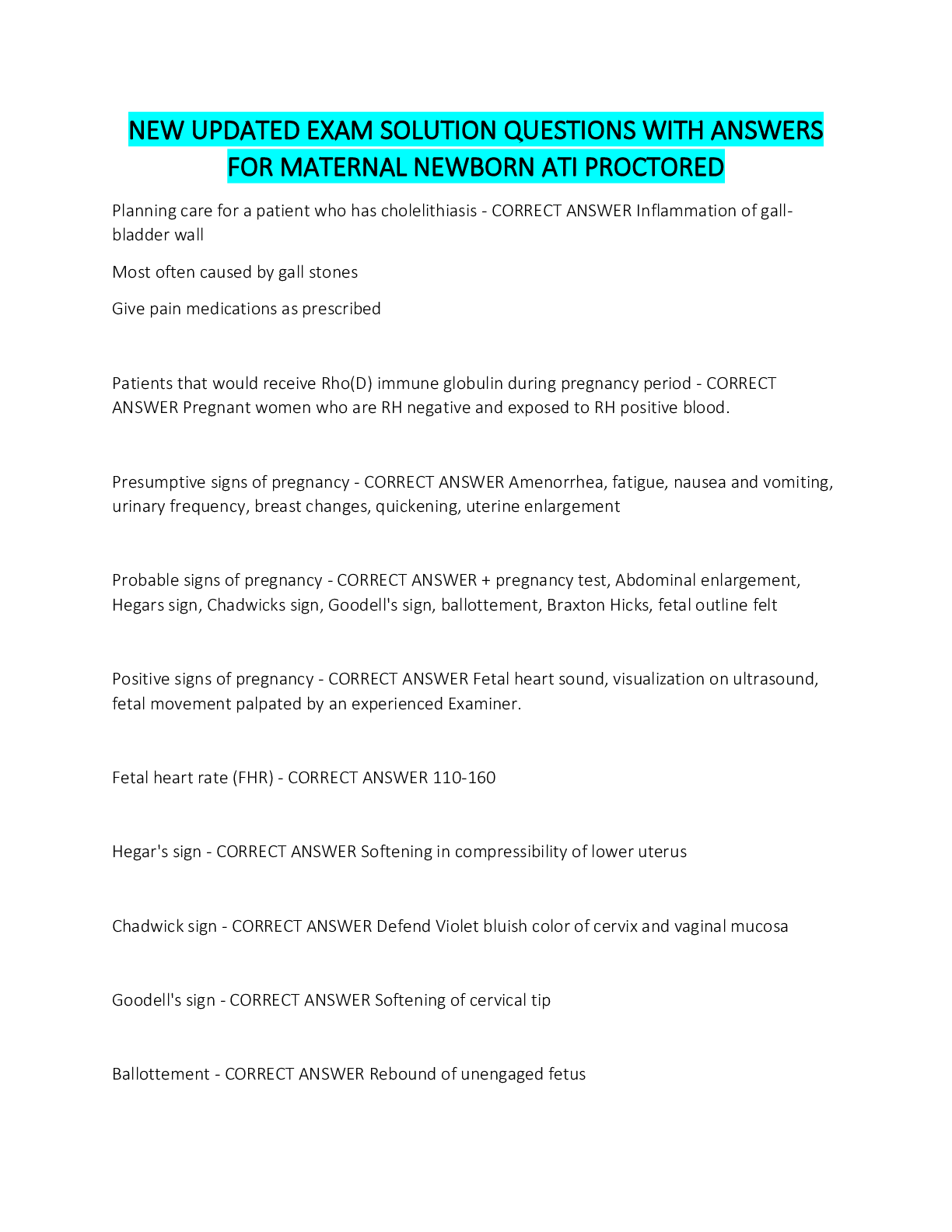 *NURSING > EXAM > NEW UPDATED EXAM SOLUTION QUESTIONS WITH ANSWERS FOR MATERNAL NEWBORN ATI PROCTORED (All)