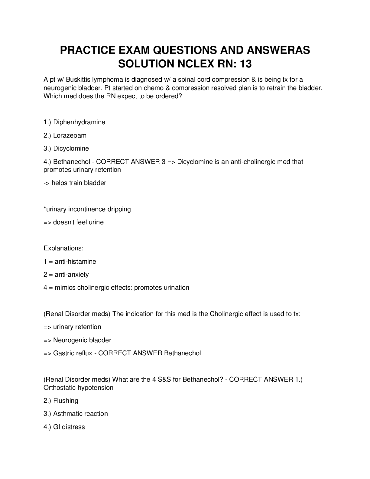 *NURSING > EXAM > PRACTICE EXAM QUESTIONS AND ANSWERAS SOLUTION NCLEX RN: 13 (All)