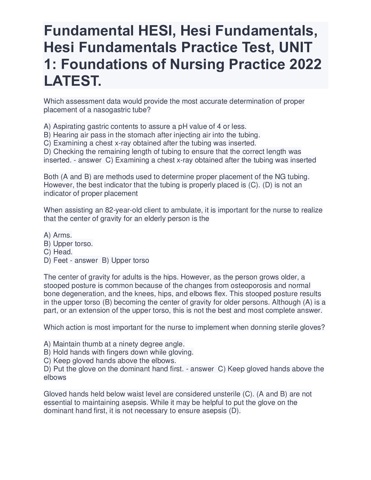 *NURSING > EXAM > HESI Fundamentals Practice Test B WELL EXPLAINED 100% CORRECT. (All)