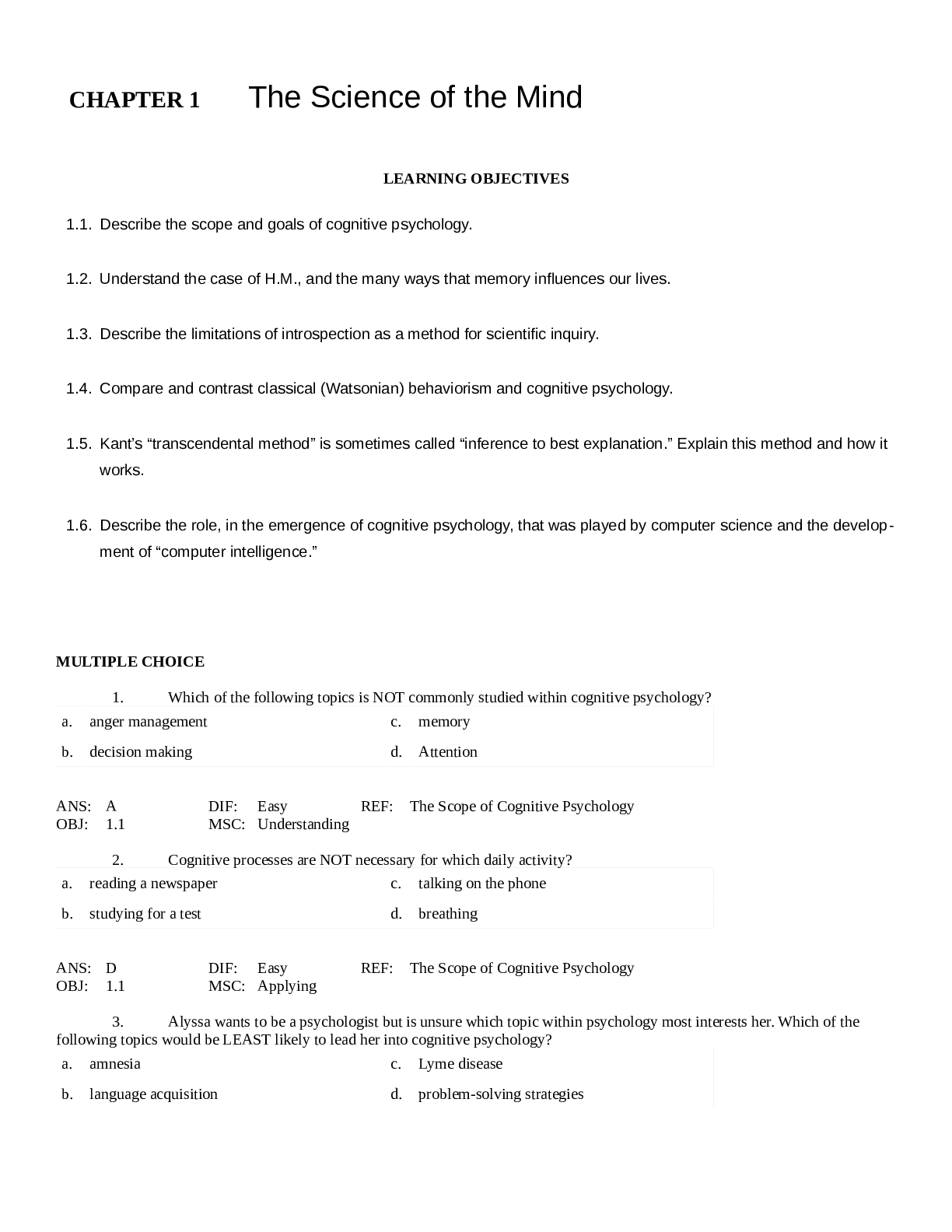 *NURSING > QUESTIONS & ANSWERS > CHAPTER 1 The Science of the Mind (All)