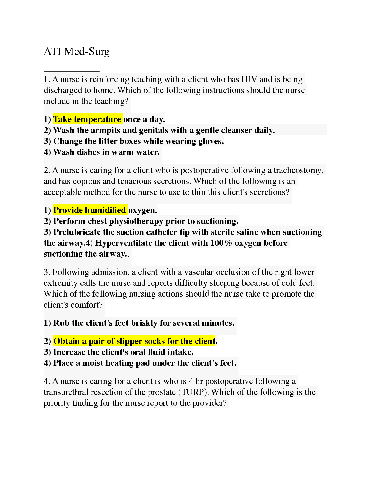 *NURSING > EXAM > ATI MED SURG PROTORED EXAM SPRING 2022 {Questions and and answers} (All)