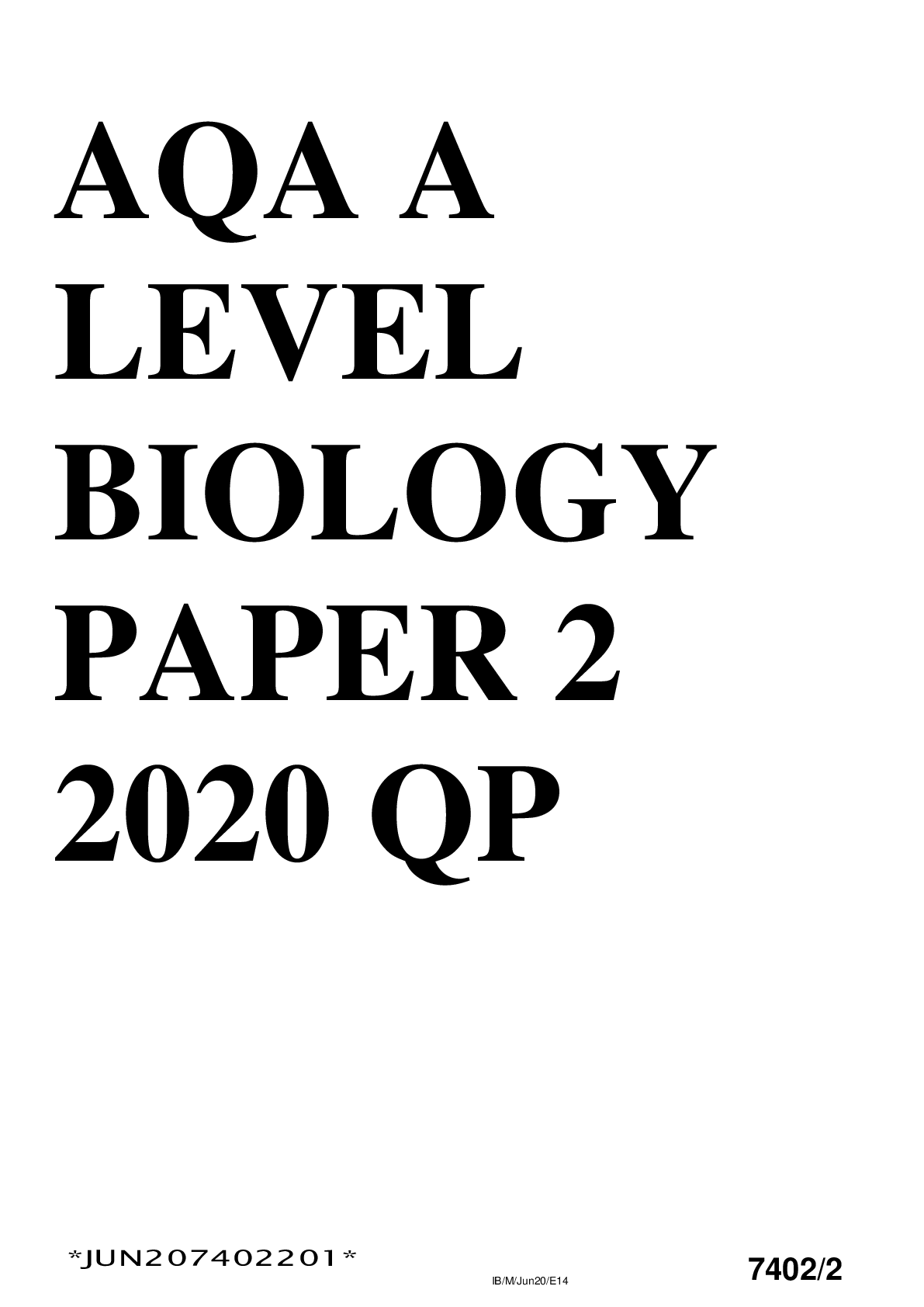*NURSING > EXAM > AQA A LEVEL BIOLOGY PAPER 2 2020 QP/ TOP SCORE (All)