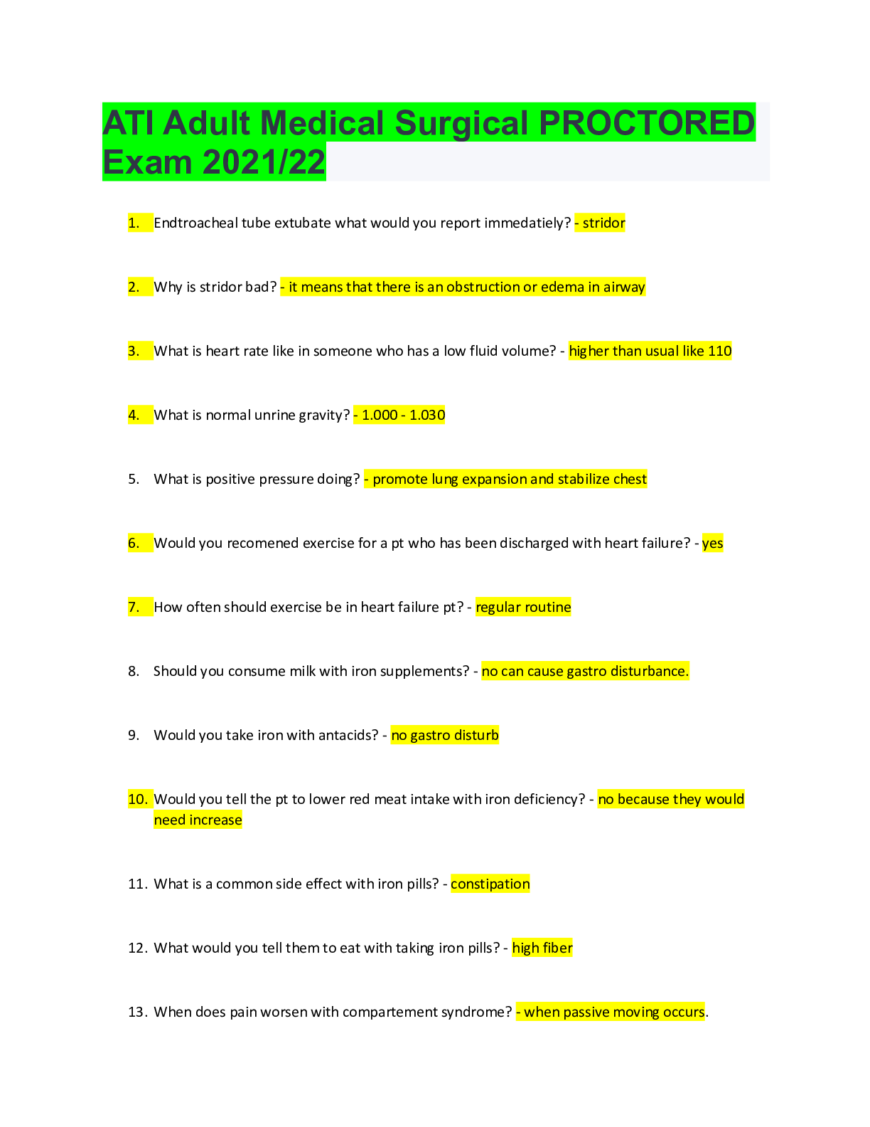*NURSING > ATI MEDICAL SURGICAL > Medical surgical ATI proctored exam review 2022 (All)