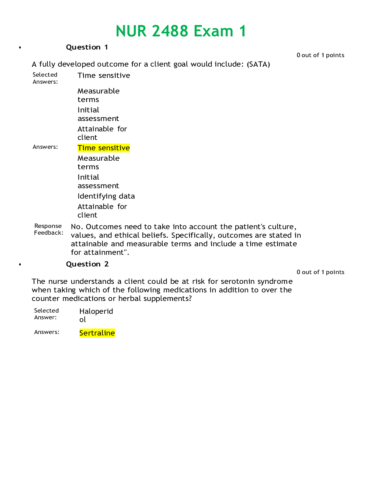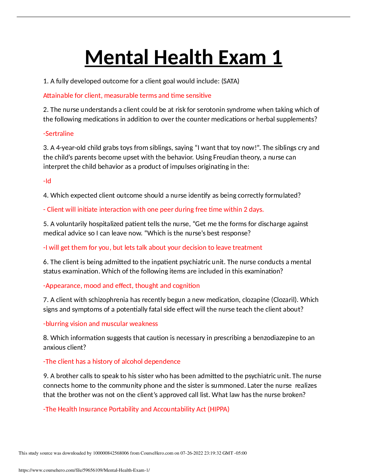 *NURSING > QUESTIONS & ANSWERS > NUR2488 Mental Health Nursing Exam 1 Corrected (All)