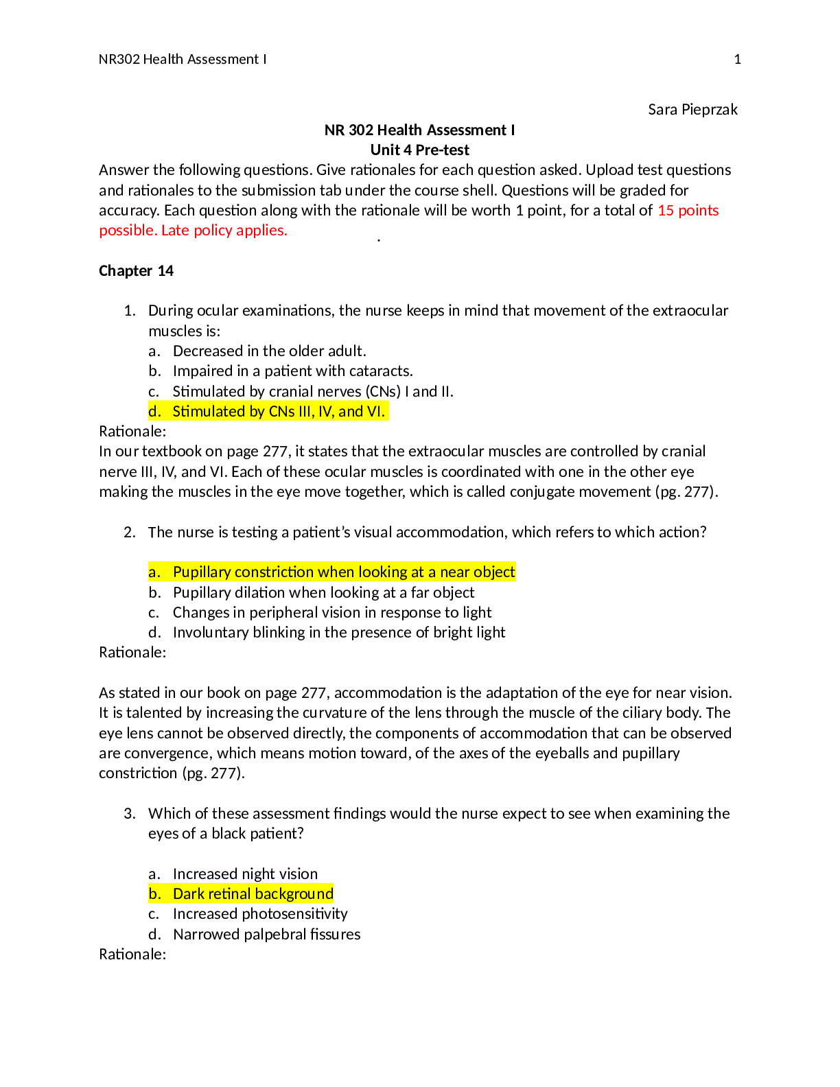 *NURSING > EXAMs > NR 302 Health Assessment I Unit 4 (All)