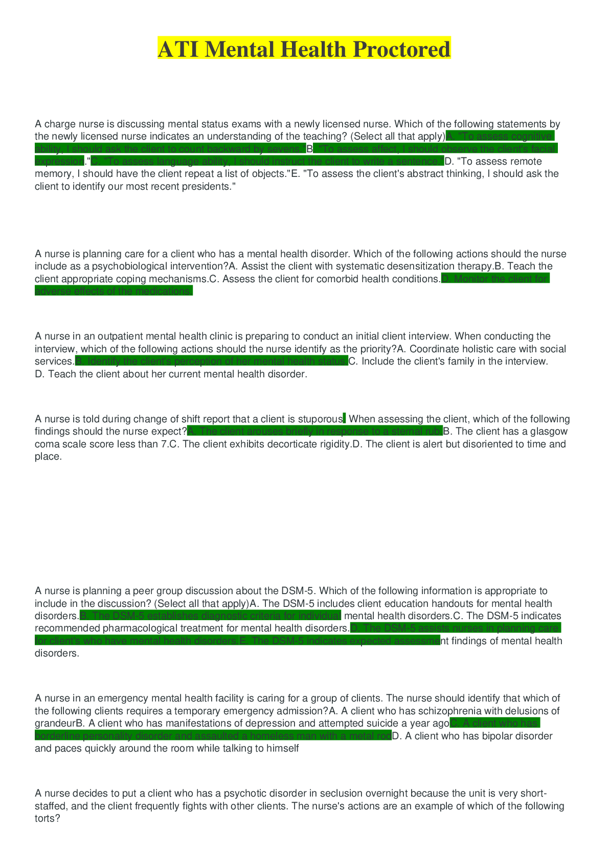 *NURSING > EXAM PROCTORED > ATI Mental Health Proctored (All)