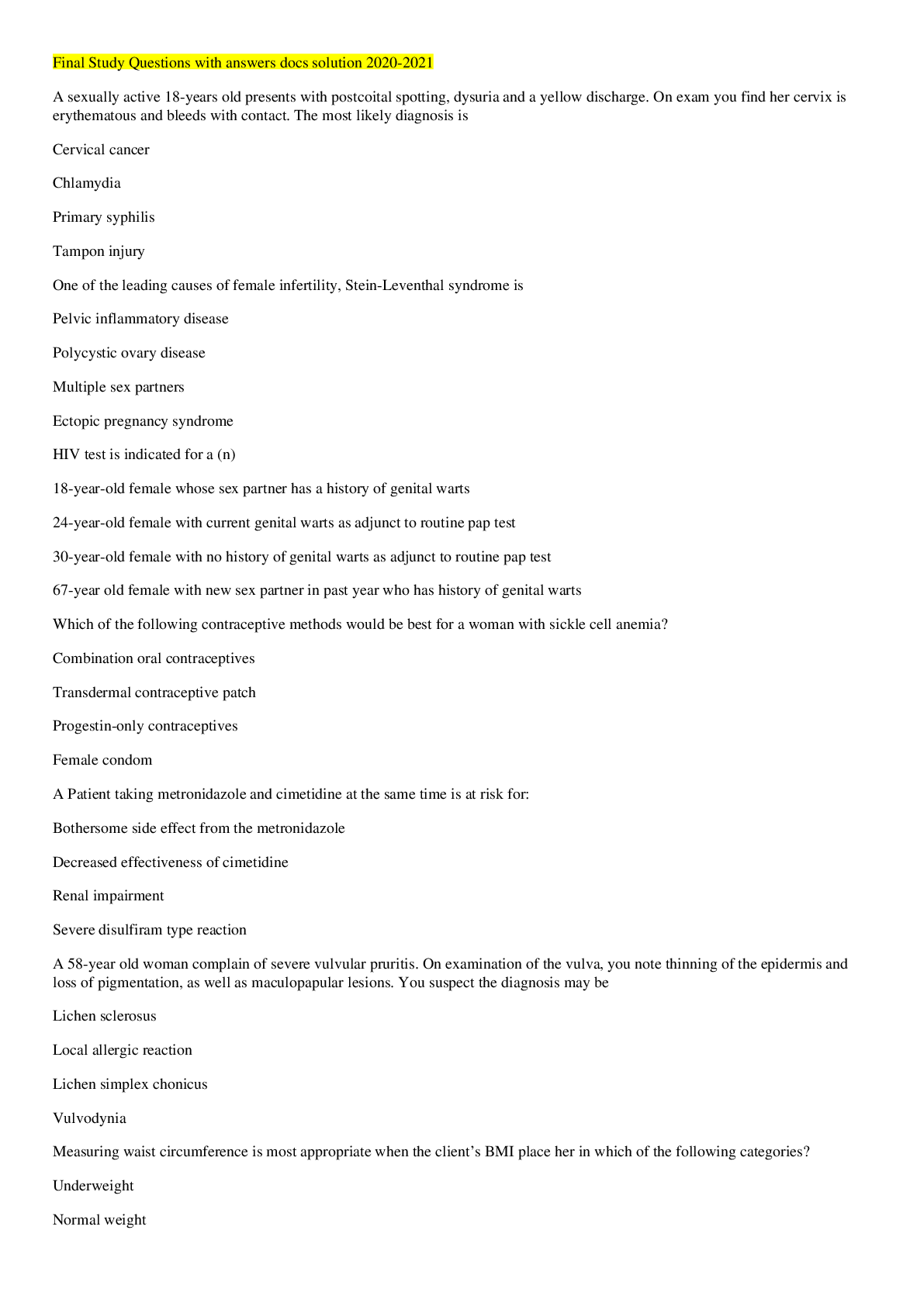 *NURSING > QUESTIONS & ANSWERS > NR 602 Week 8 Final Exam; Women s Health Content With Answers (All)