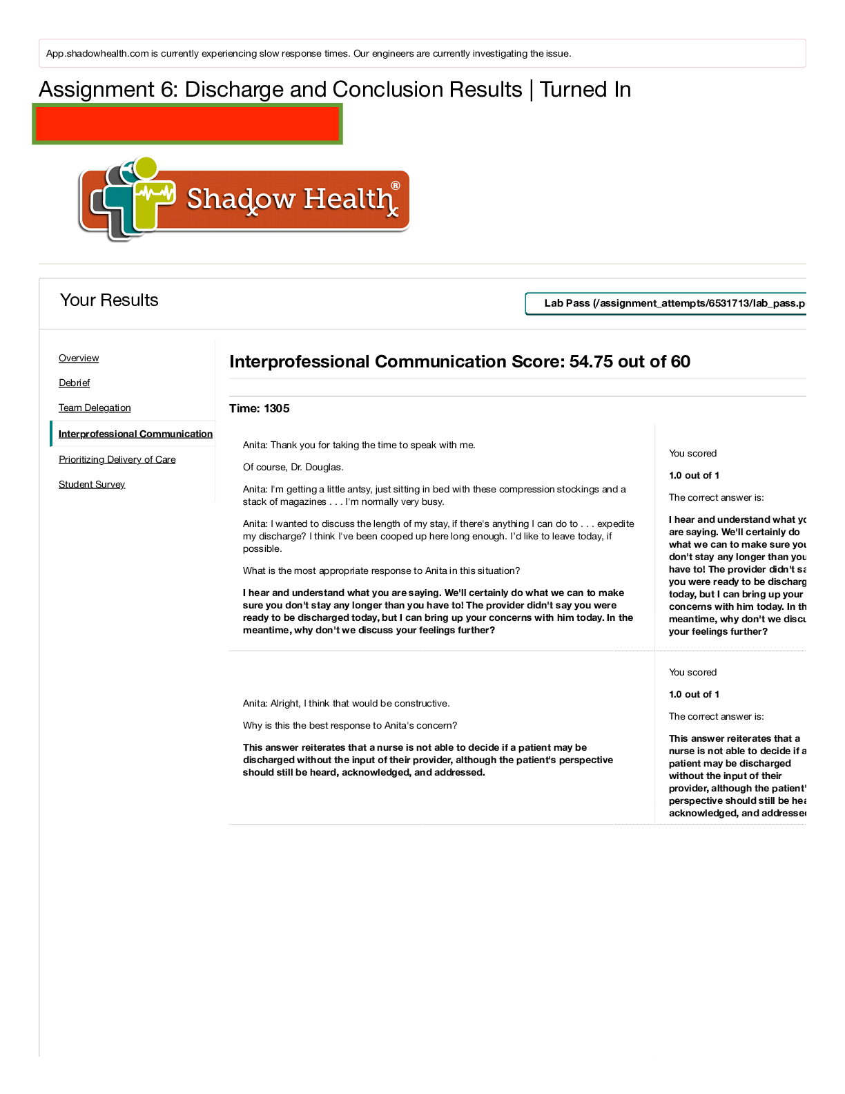 *NURSING > STUDY GUIDE > Assignment 6 Discharge and Conclusion Inter-professional Communication Shadow Health (All)