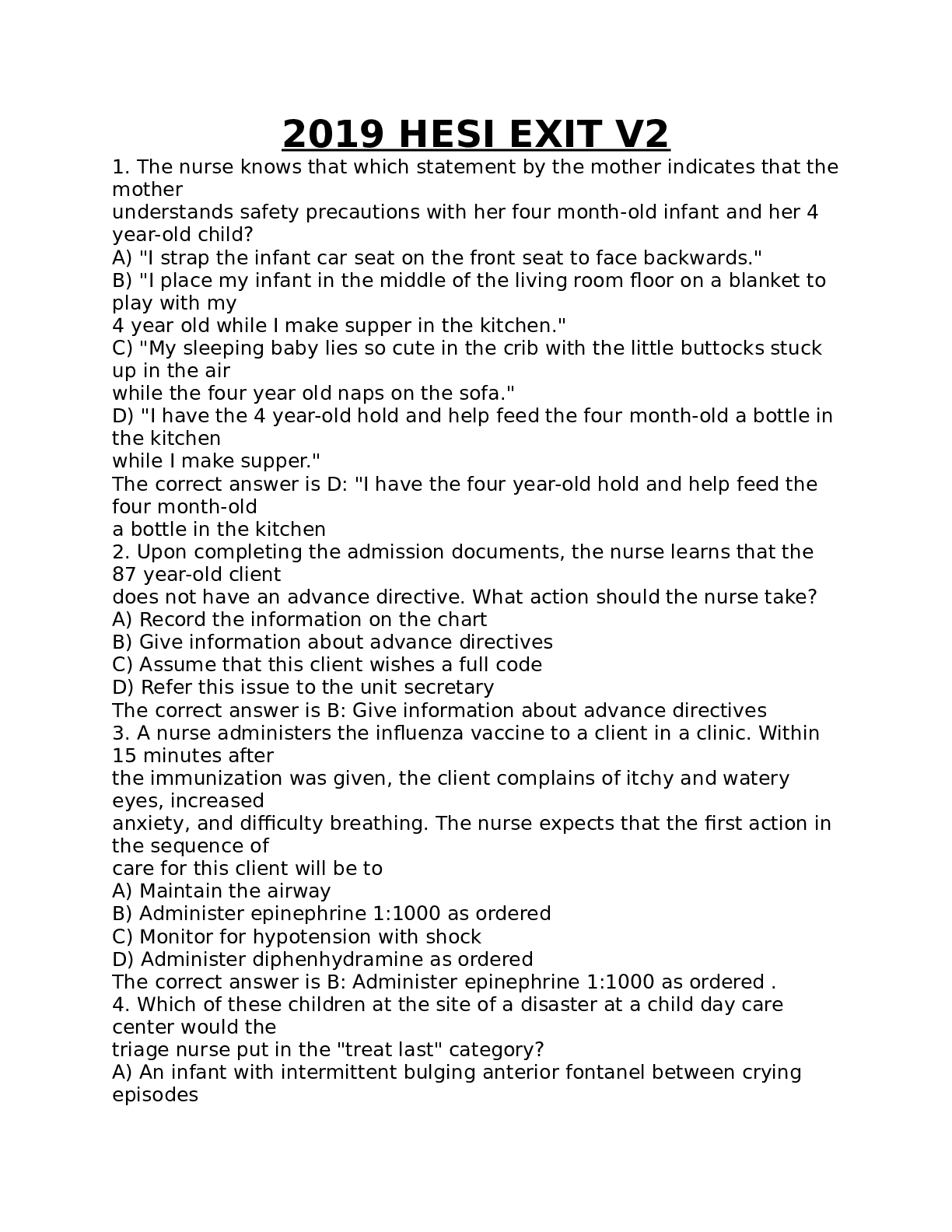 *NURSING > HESI > HESI A2 Critical Thinking Questions and Answers (Summer 2020) A++ all answers correct. (All)
