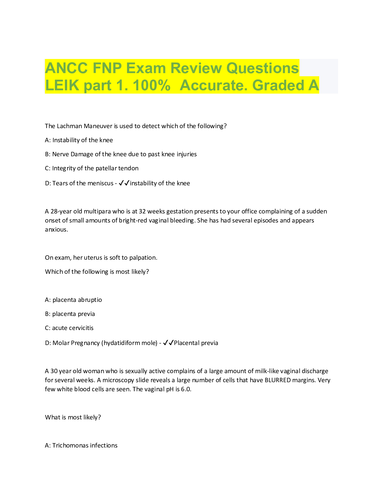 *NURSING > EXAM > ANCC FNP Exam Review Questions LEIK part 1 (Questions And Answers.). (All)