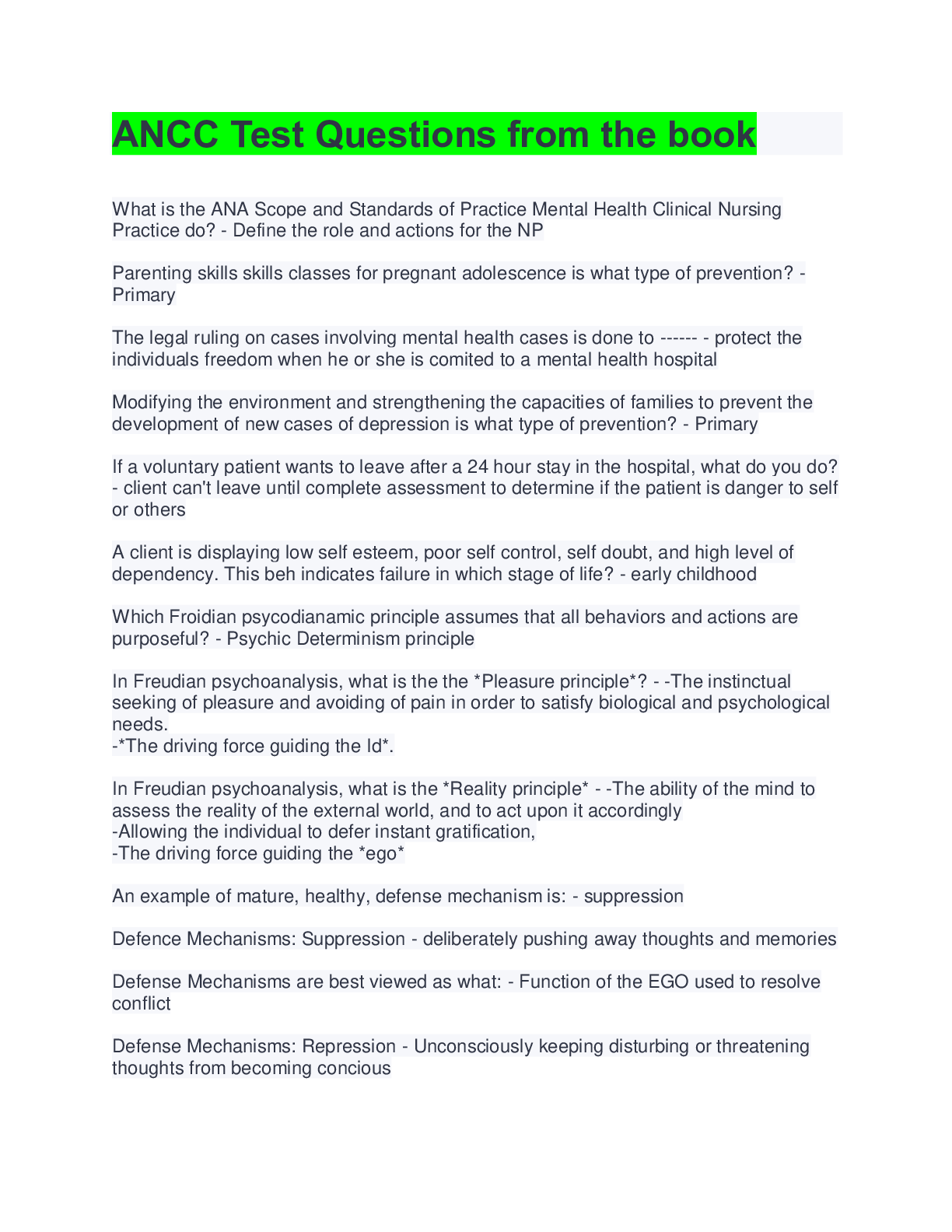 *NURSING > EXAM > ANCC Test Questions From The Book( Questions And Answers.). (All)