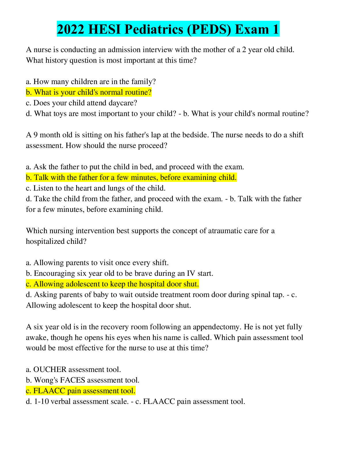 *NURSING > EXAM > 2022 Hesi Pediatrics (PEDS) Pediatrics Practice Exam-Answered (All)