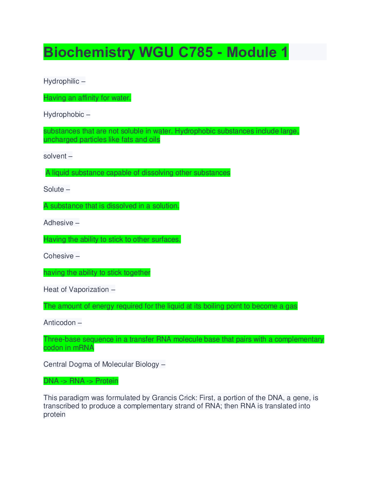 *NURSING > EXAM > BioChem C785 - WGU - Module 1 - All Questions And Answers( With Best SolutionA+ (All)