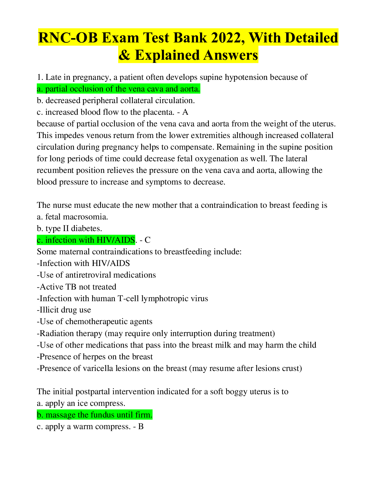 *NURSING > TEST BANKS > RNC-OB Exam Test Bank 2022, With Detailed & Explained Answers (All)