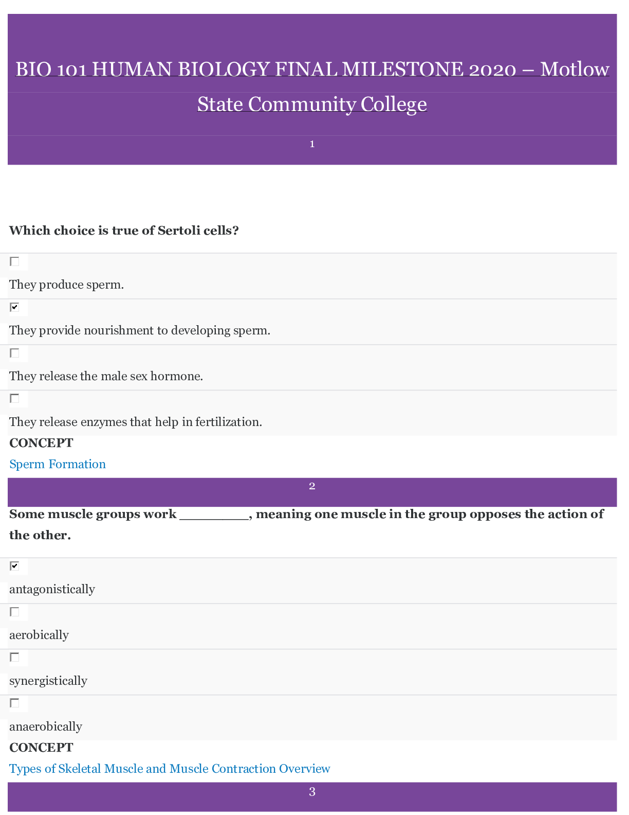 *NURSING > EXAM > BIO 101 HUMAN BIOLOGY FINAL MILESTONE 2020 – Motlow State Community College (All)