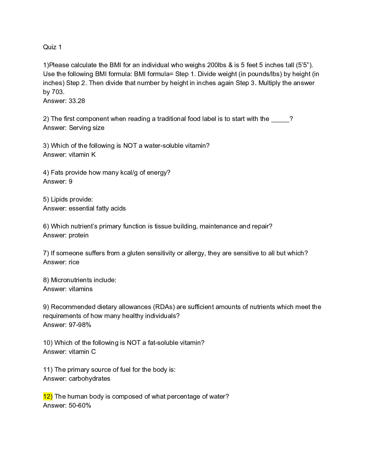 *NURSING > EXAM > HYG 4400 Nutrition and Oral Health_Quiz_1_2020 - University of Missouri | HYG4400 Nutrition and Oral Health_Quiz_1_2020 Question And Answers/ Rated A. (All)