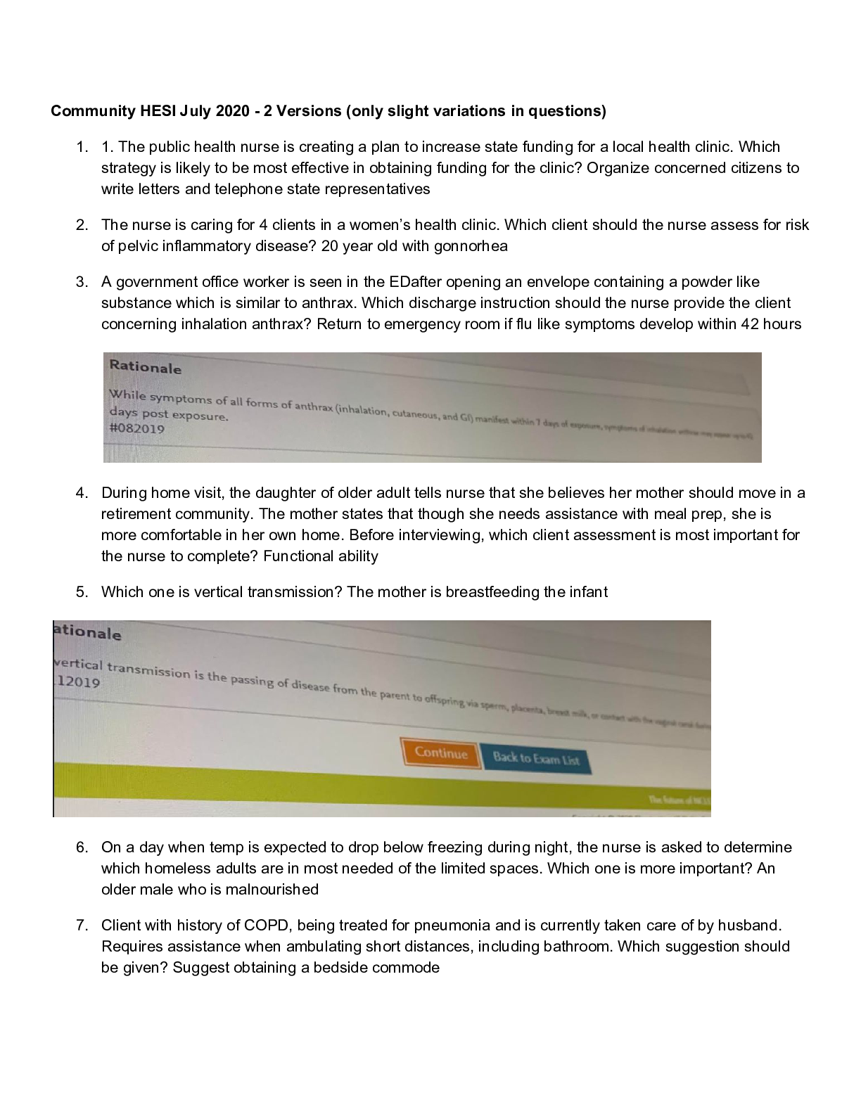 *NURSING > HESI > NUR 206 Community HESI July 2020- 2 Versions (All)