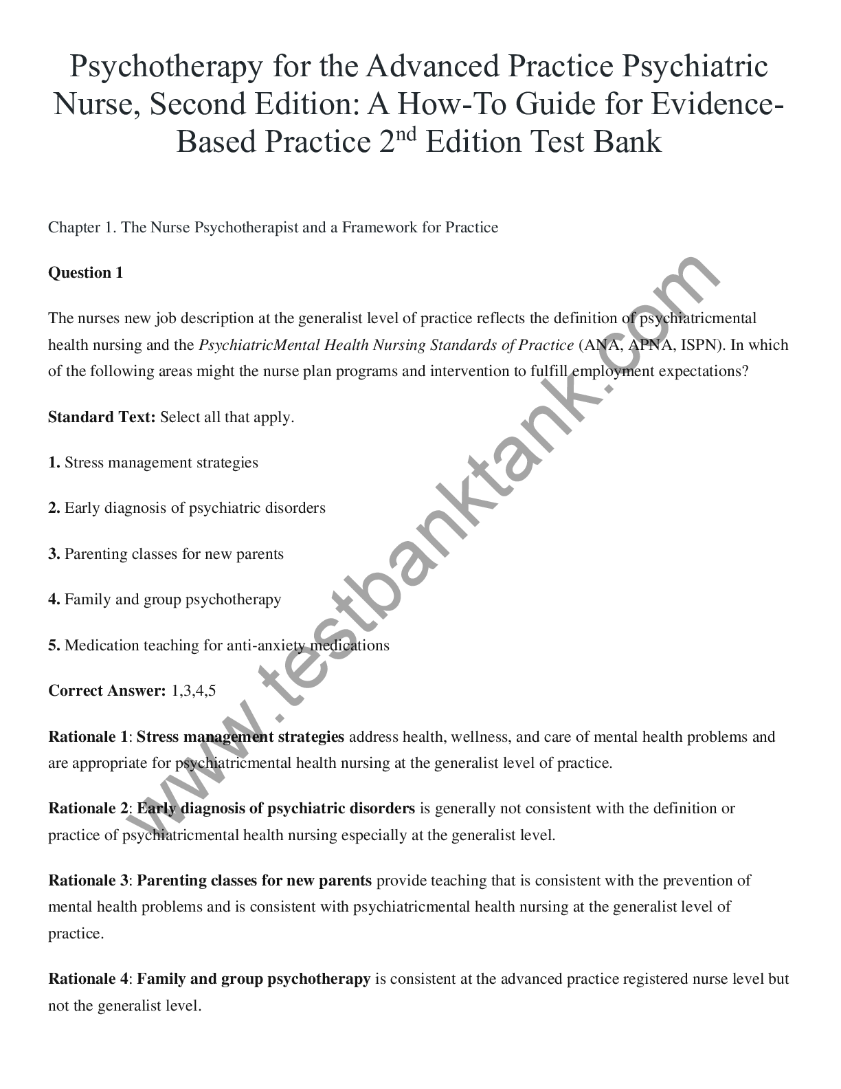 *NURSING > TEST BANKS > Wheeler TB Psychotherapy for the Advanced Practice Psychiatric Nurse Test Bank (All)